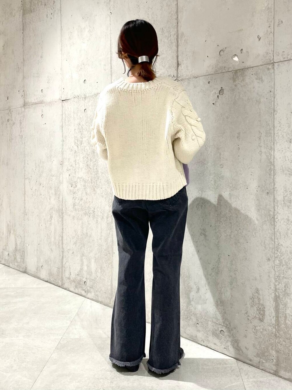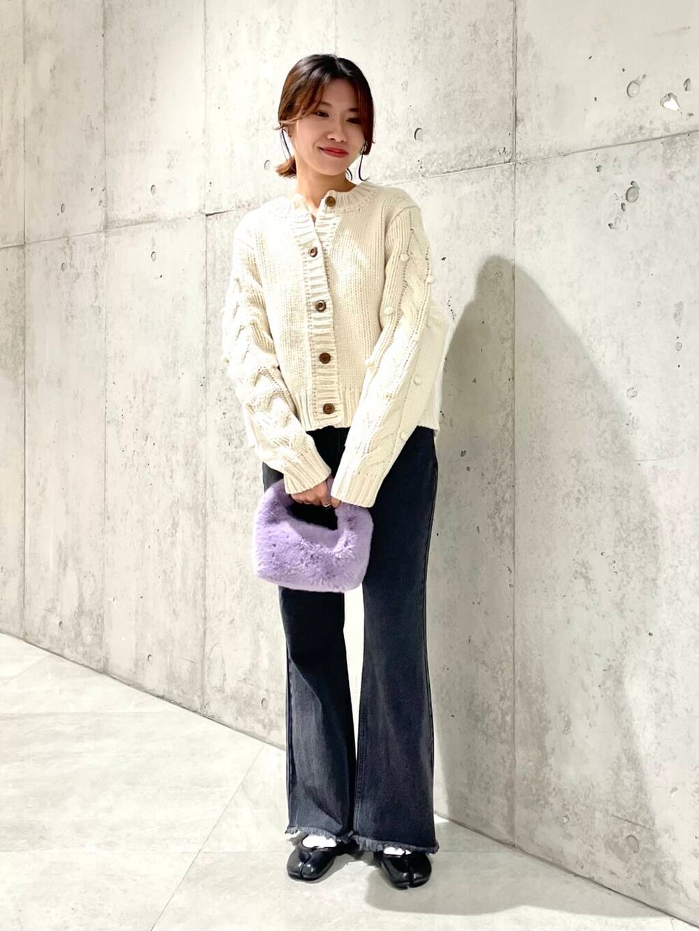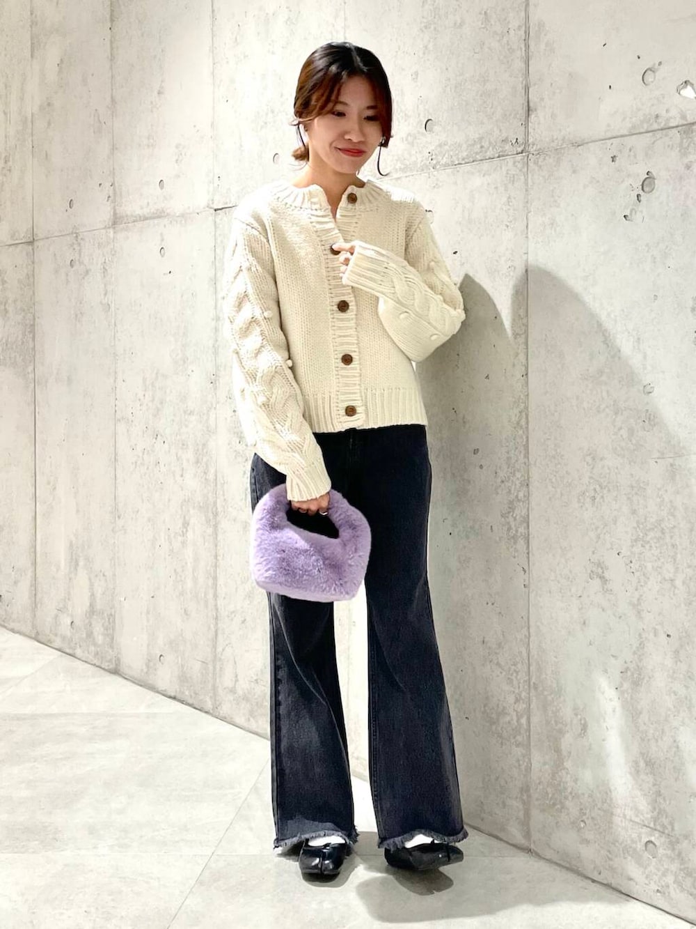 今回は、絶妙なヴィンテージ感が可愛い毛100%カーディガン×フレアデニムです。