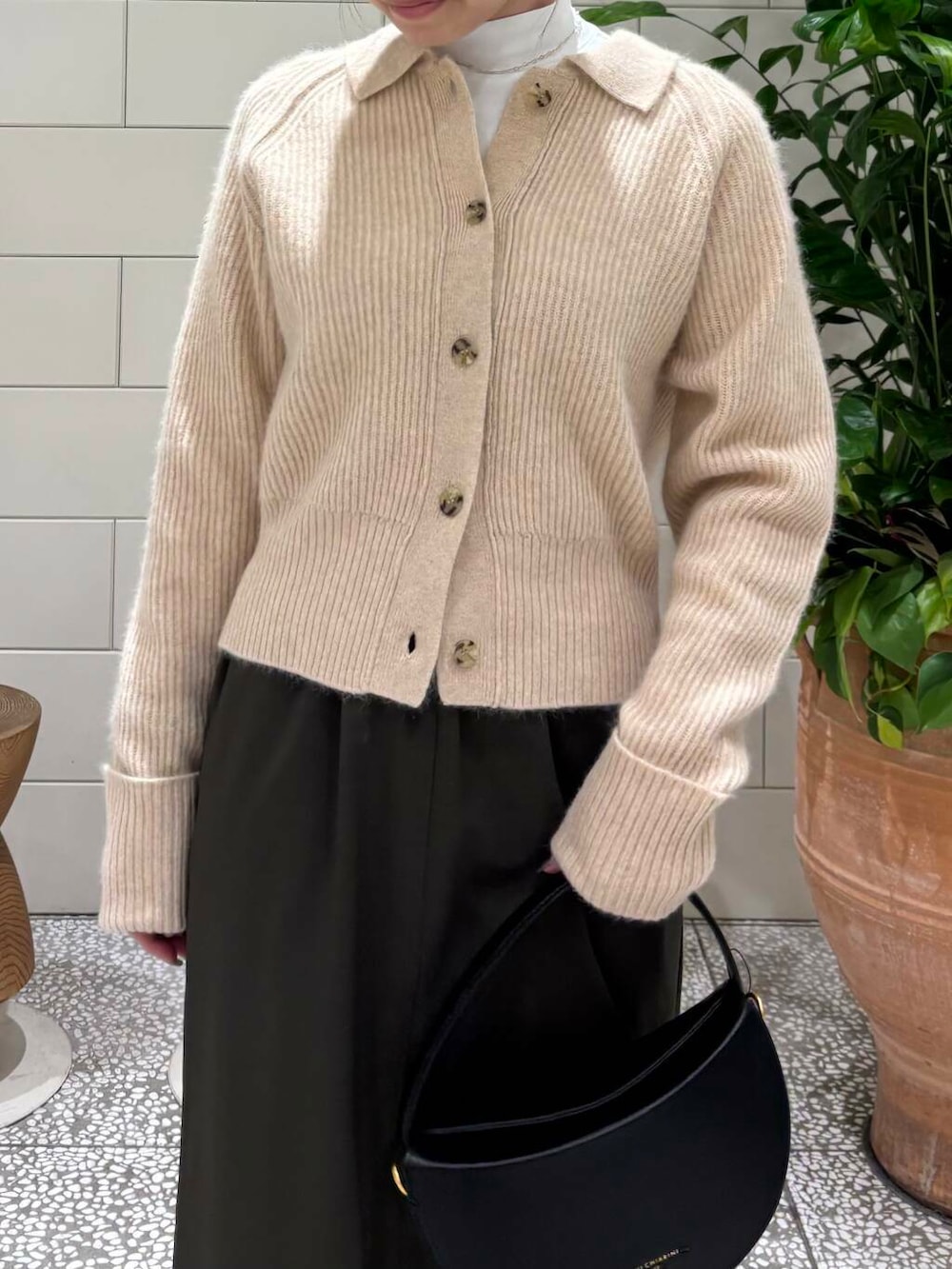 1枚でもカーディガンとしても着用していただけます。コンパクトかつゆるっとしたシルエットがどんなスタイリングにも使いやすく万能です。