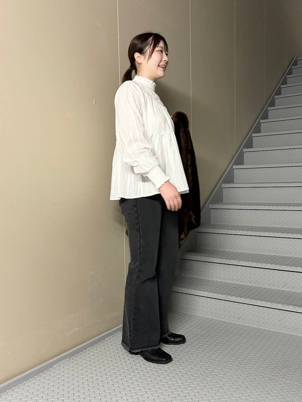 透け感がある上品だけど可愛らしい白ブラウスを合わせました👍