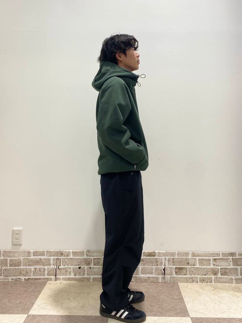 定番のフードブルゾンながらボンディング素材特有のハリ感を併せ持ち、ゆる過ぎずタイト過ぎない絶妙なシルエットで、大人スマートな印象を与えてくれます。