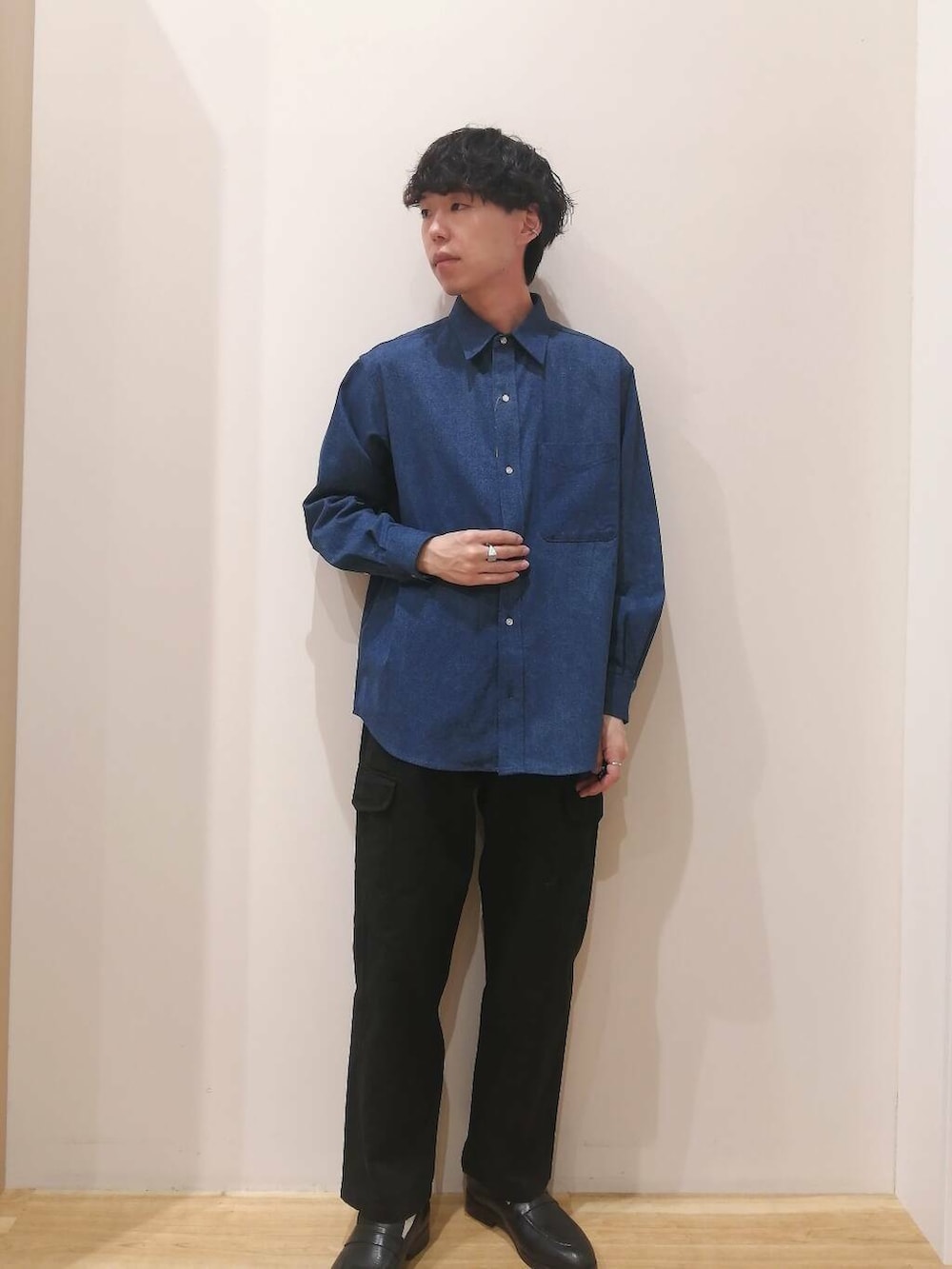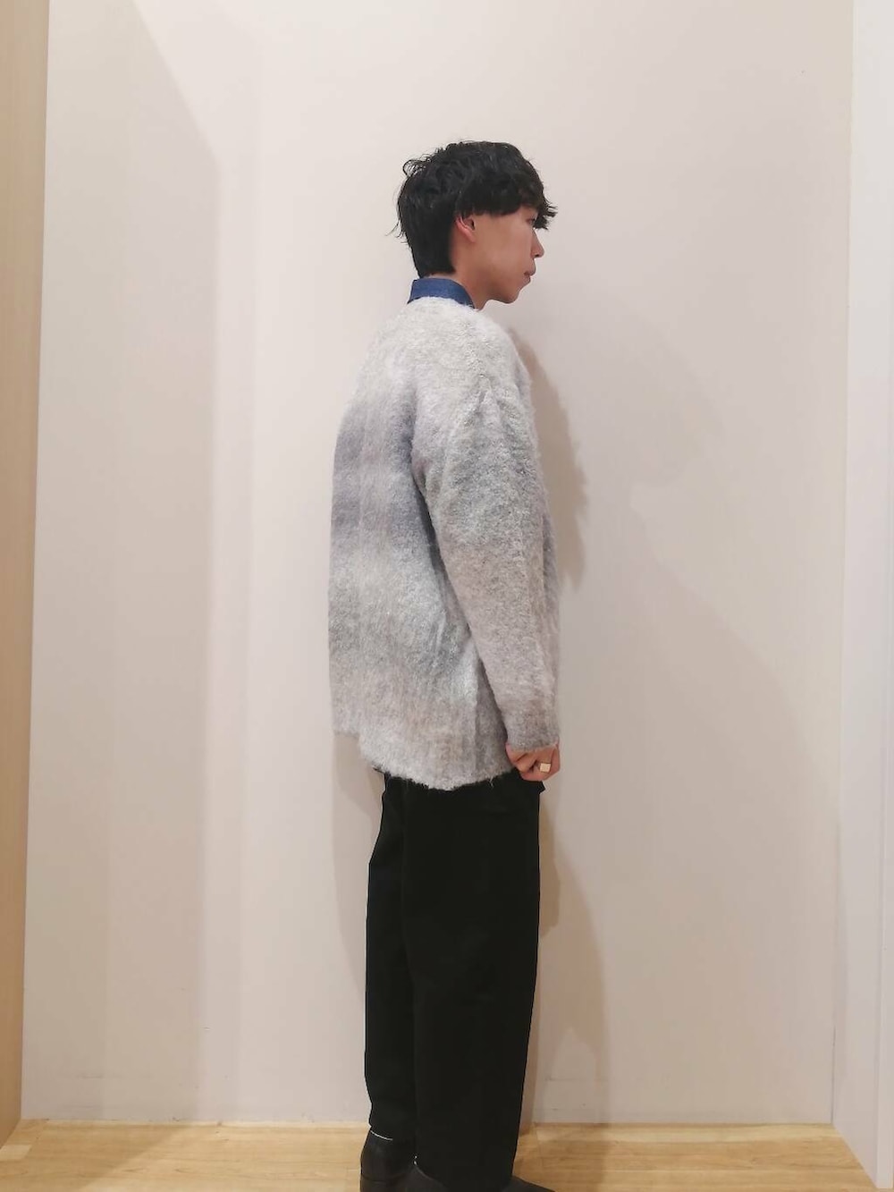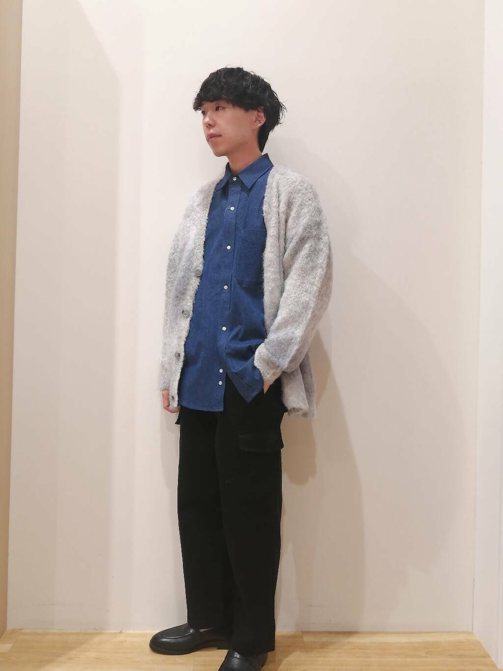 カーディガン、デニムシャツ、パンツすべてMサイズを着用しております。