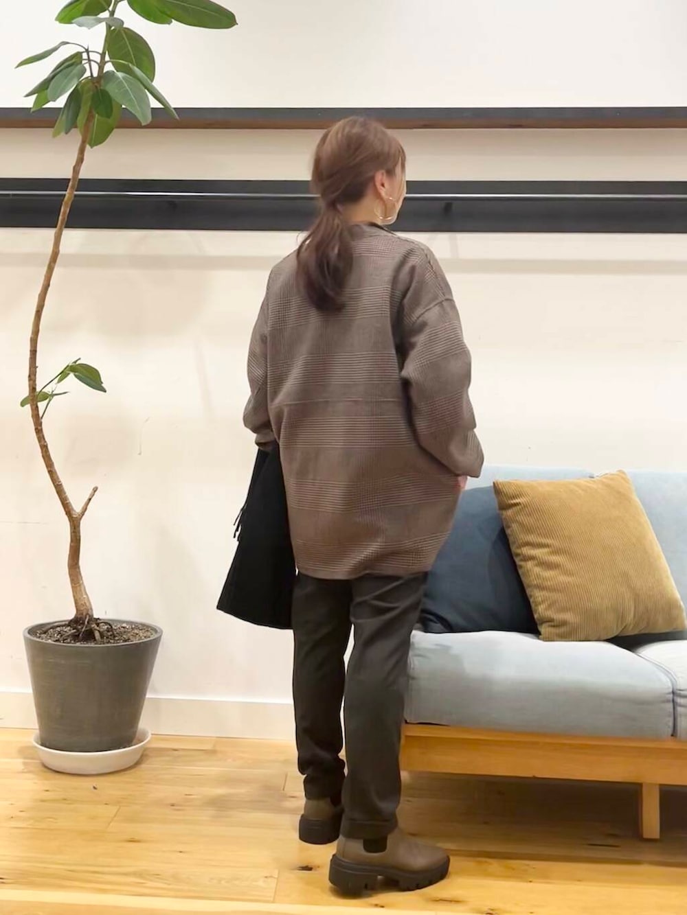 裏地がないのでまるで厚めのカーディガンを着るような気軽さで、車移動や室内ではこのぐらいのアウターはかなり使えると思います♪