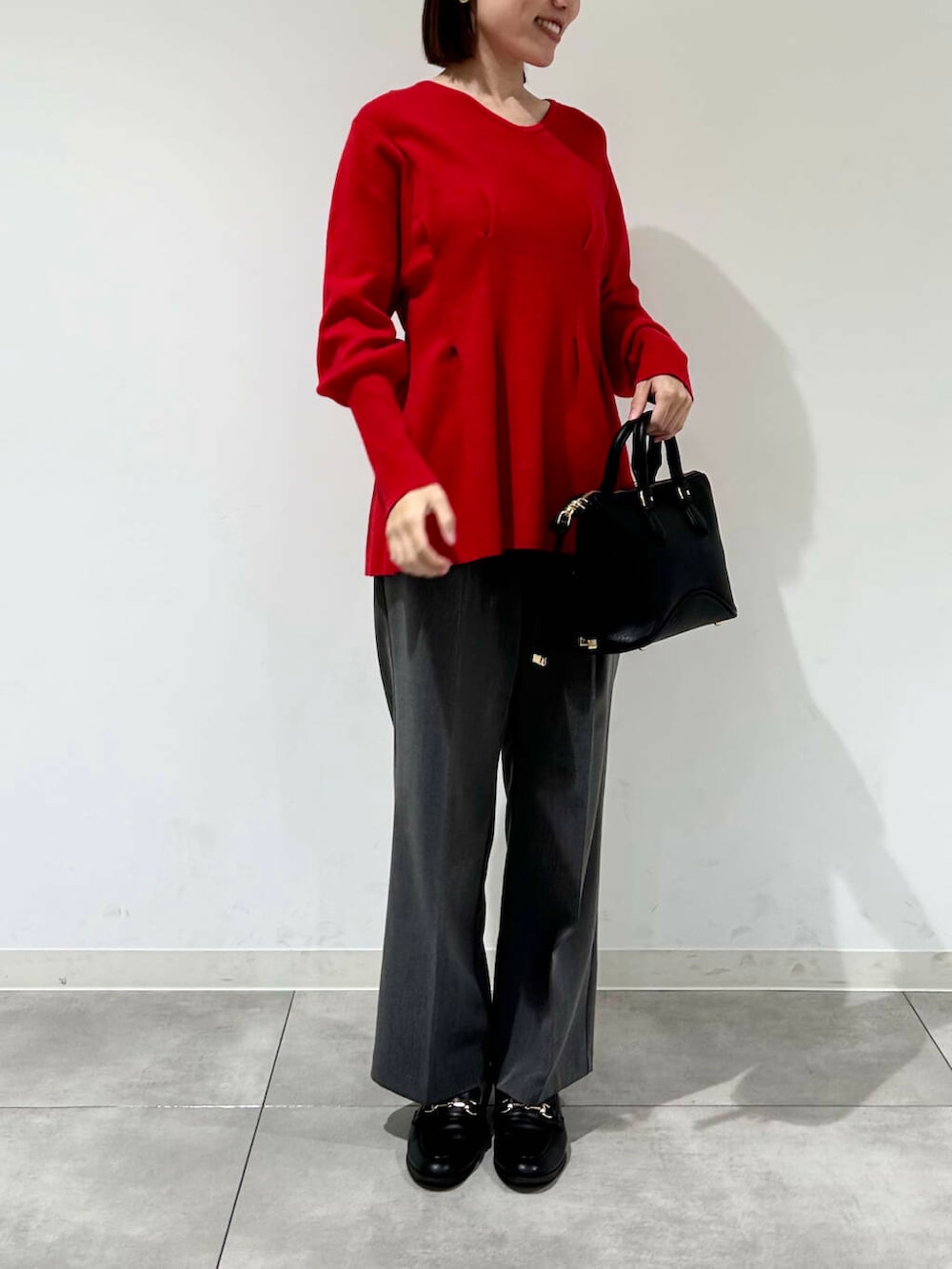 Vネックウエストタックセーターはウエスト部分をキュッと細見えしてくれます。