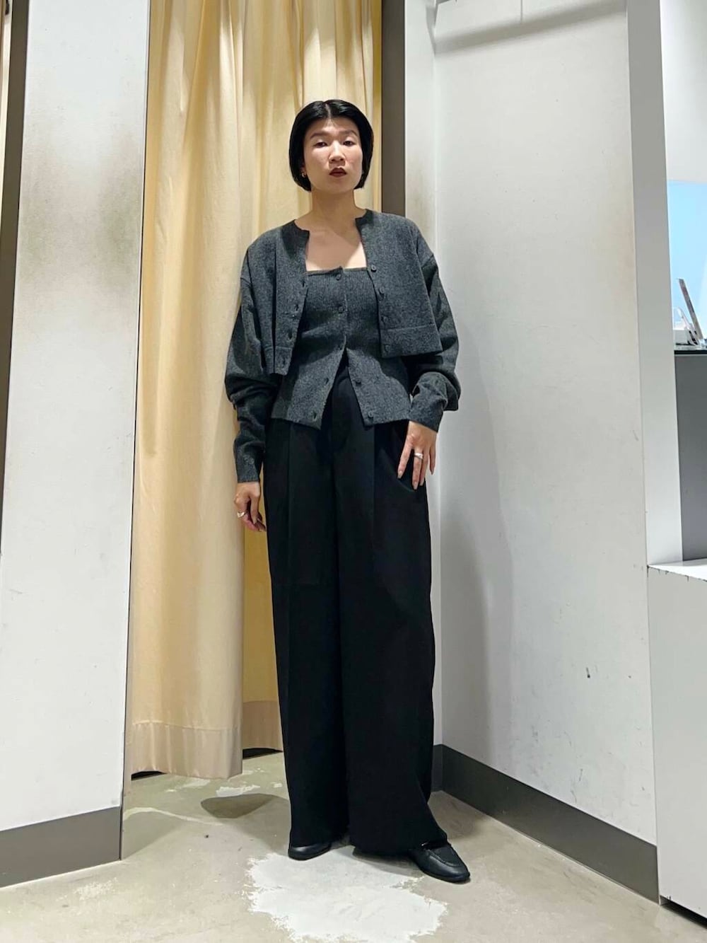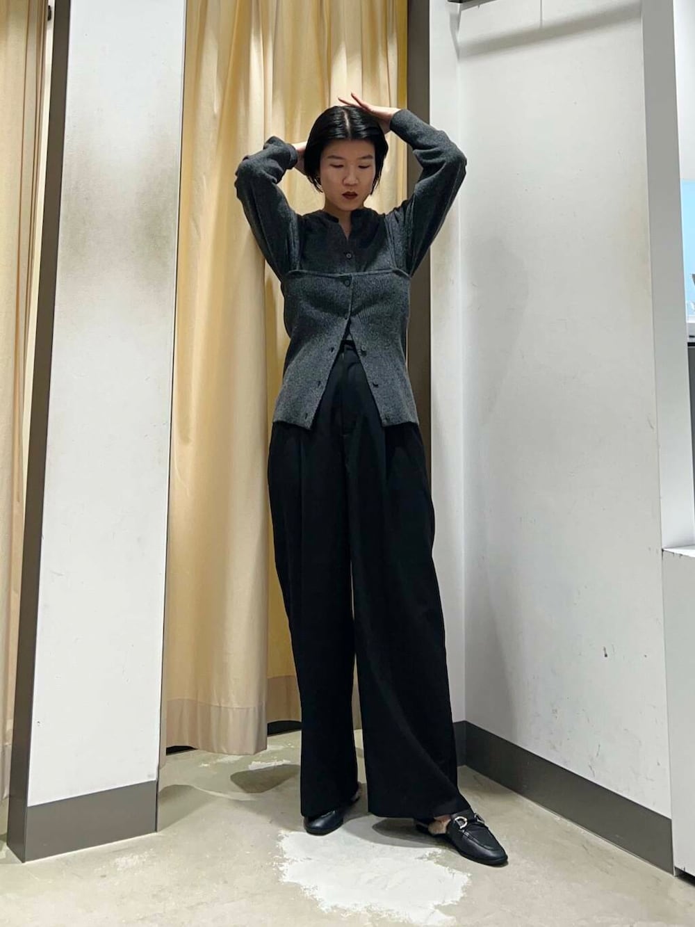 カーディガンの上からビスチェを重ねる着方をしてみました!
