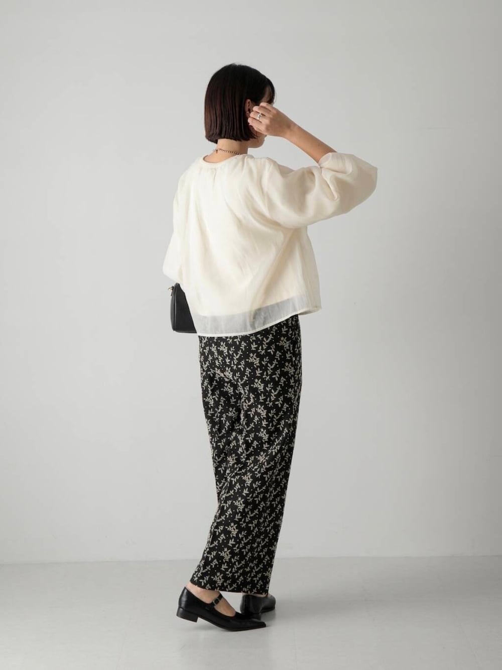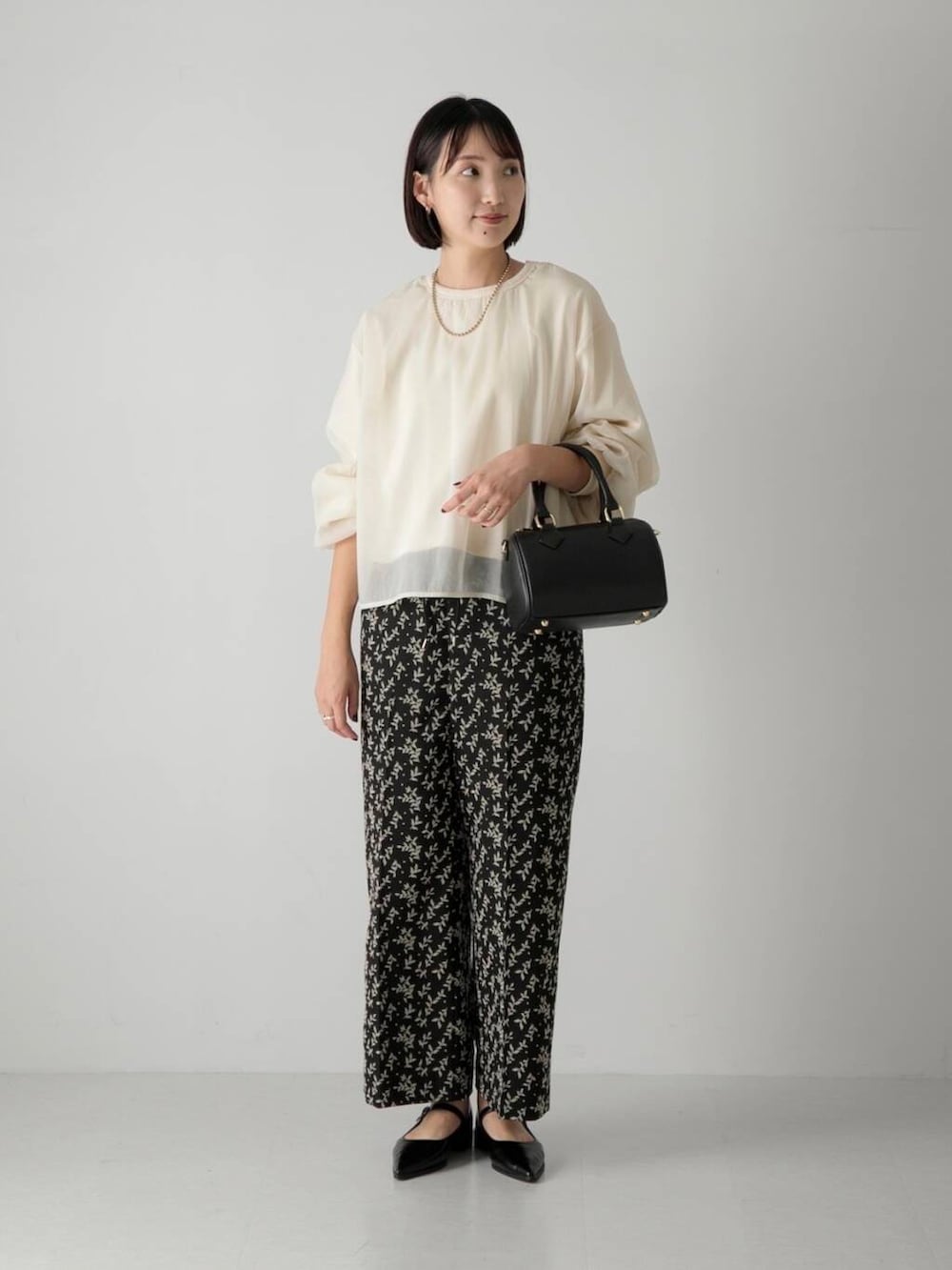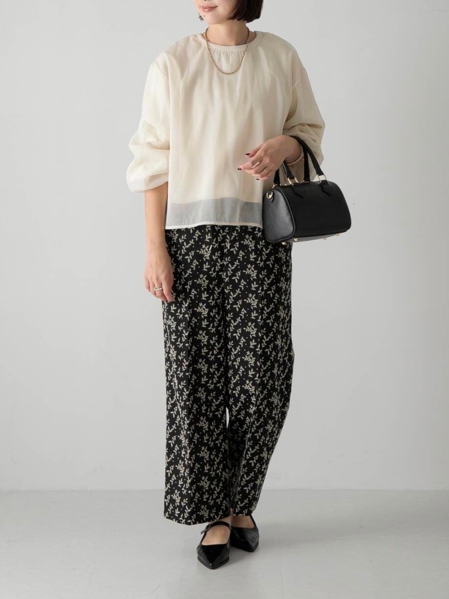 花柄のフロッキープリントがかわいいイージーパンツとモノトーンでまとめました♩