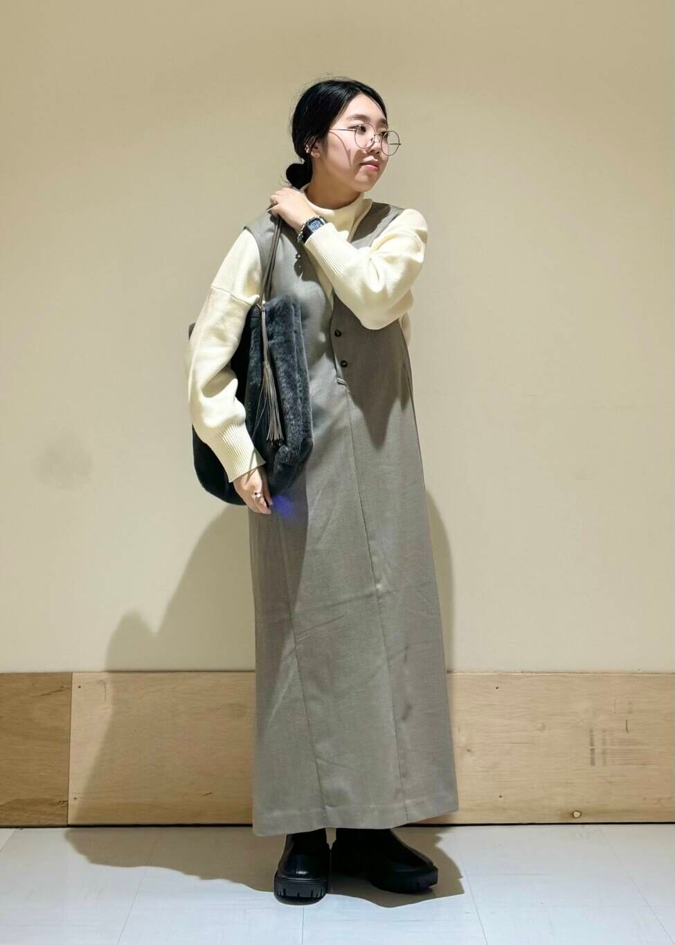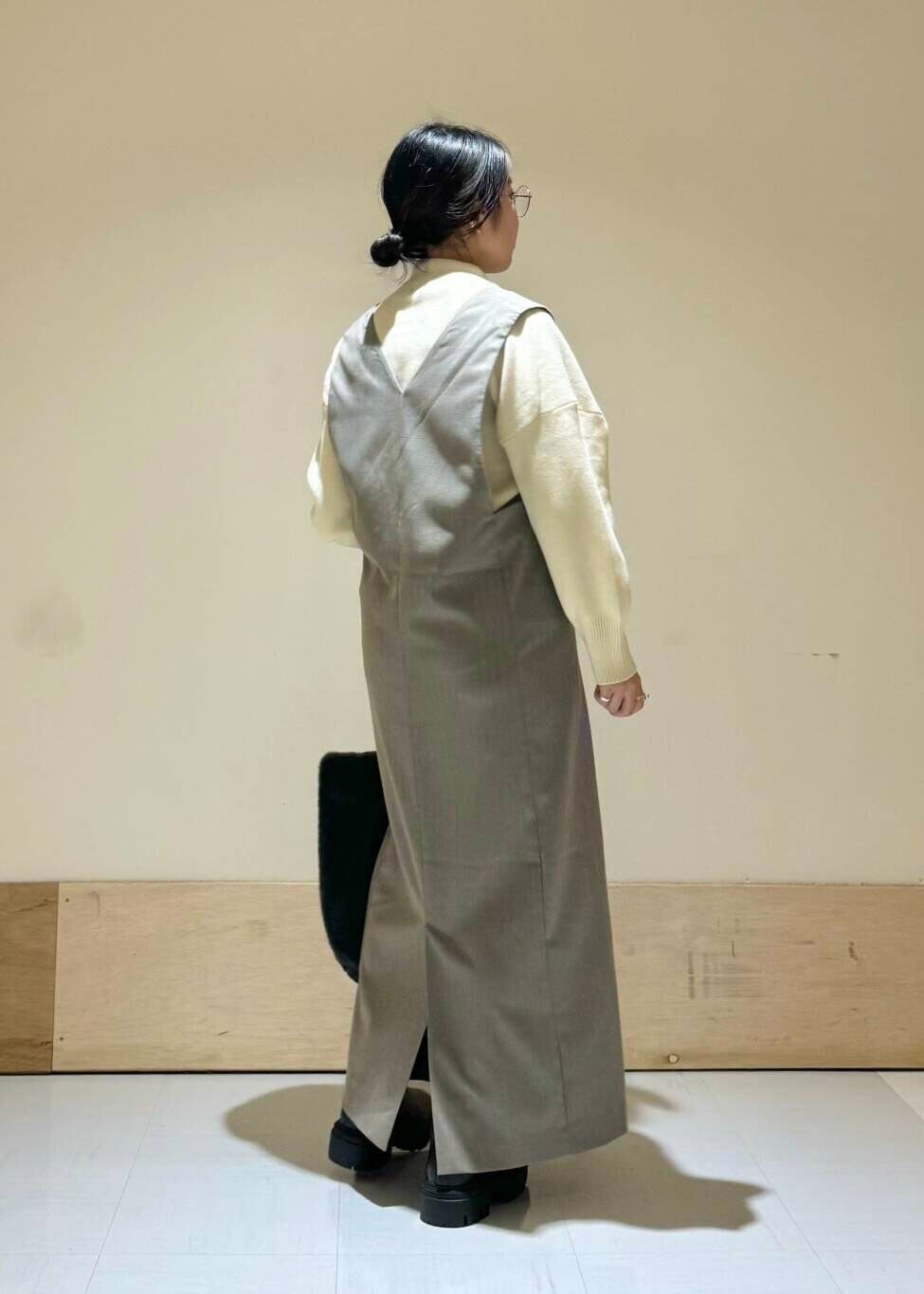 ニットをインナーにもってきてもかさばらず着やすいのもポイントです◎