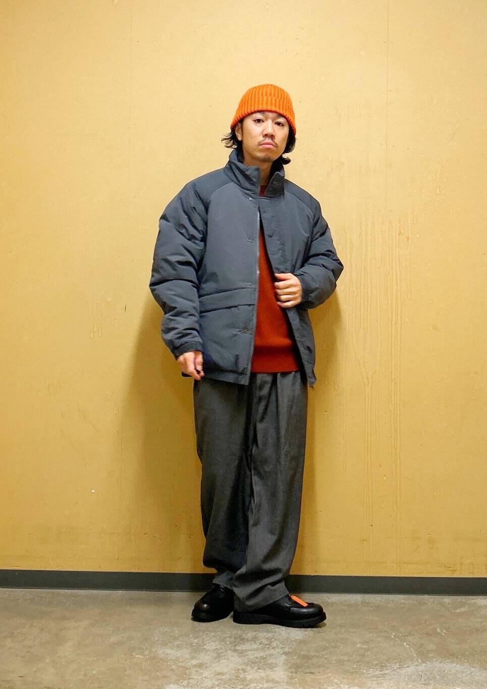今回はPRIMALOFT中綿ブルゾンとツータックイージートラウザーを使用したコーディネート。