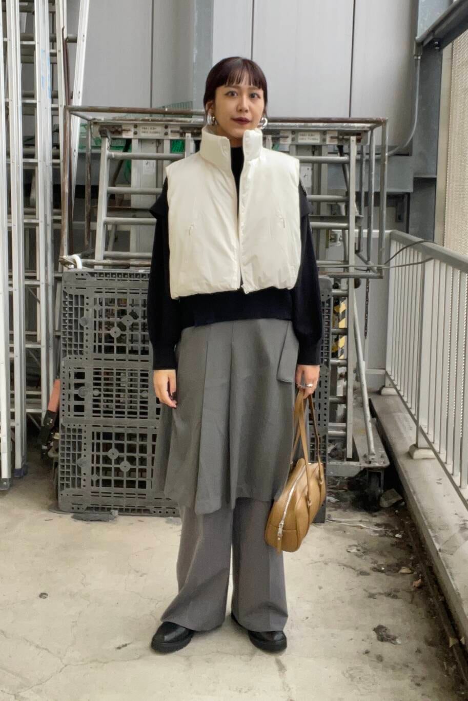 パフベストは裾が絞れるので、これからの寒い季節とても防寒できます🧶