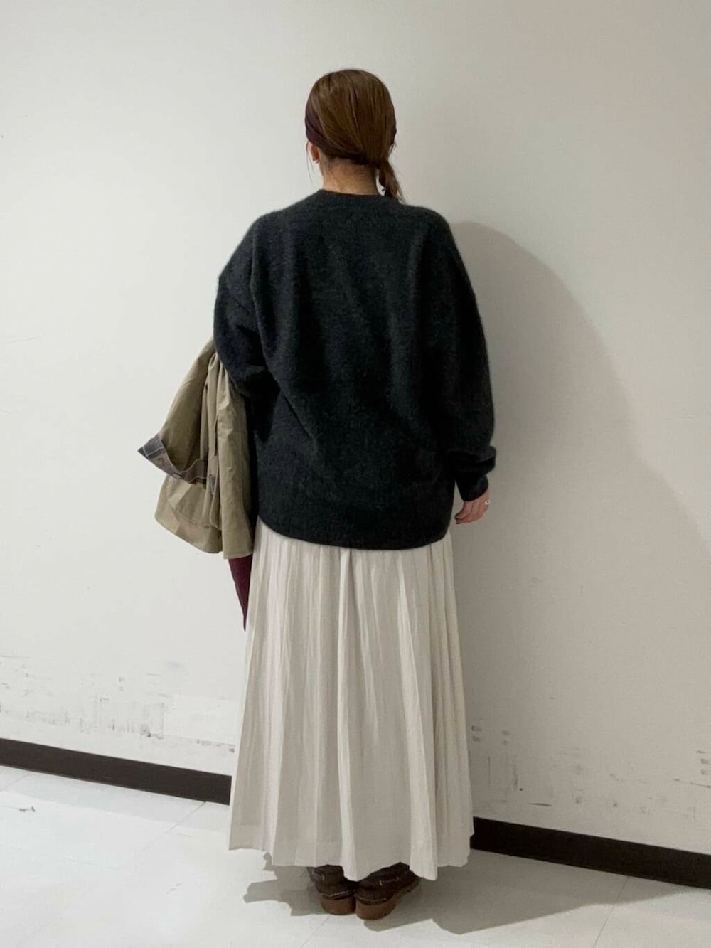 プリーツスカートですが、嫌な広がり方はせず、テロっとした素材で本当に綺麗なシルエットです!是非◎