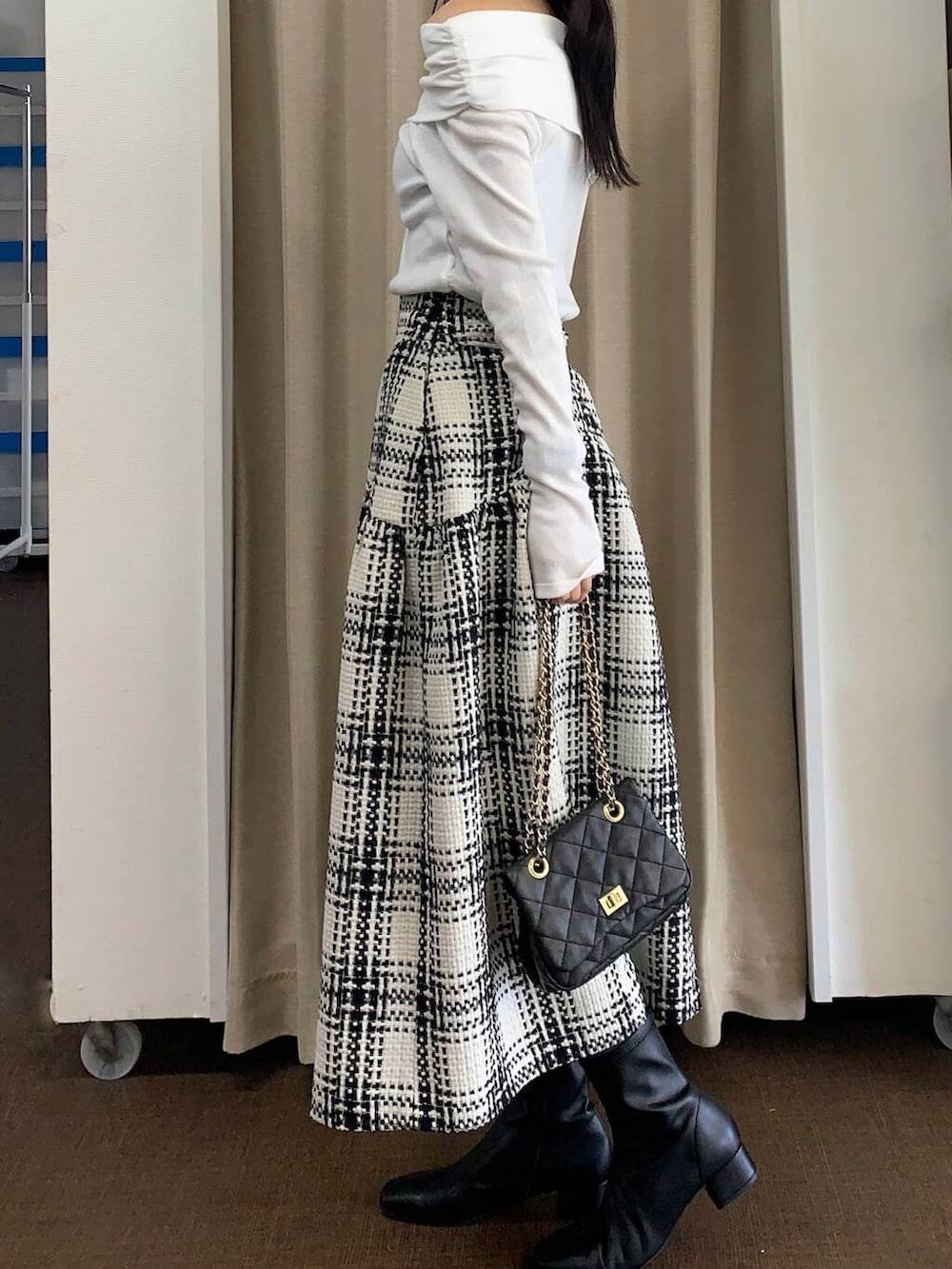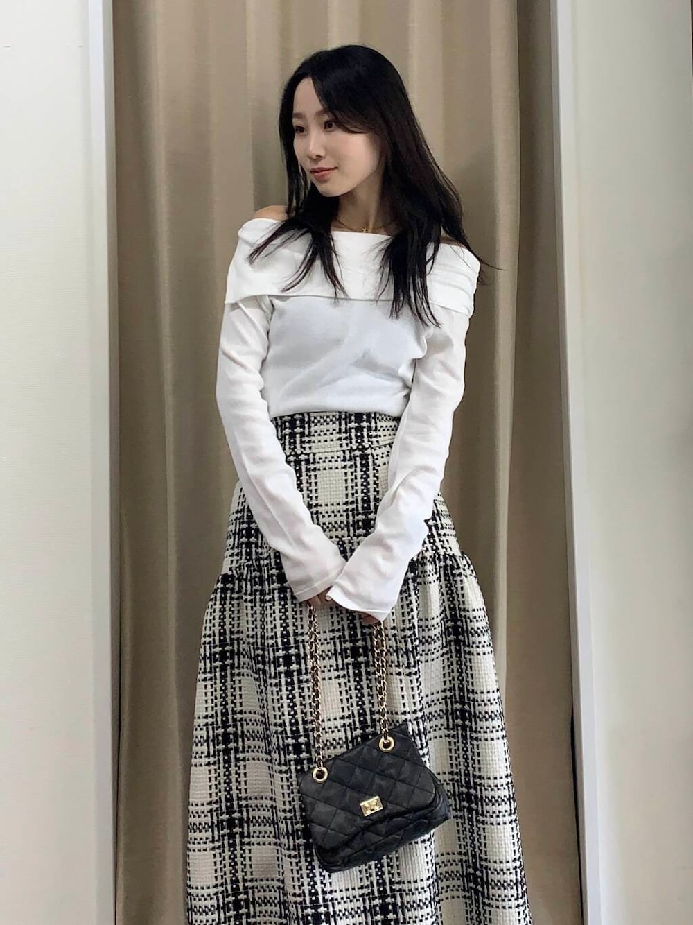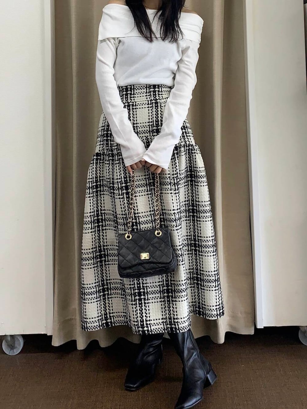 トップスが細めのアイテムだったのでボトムのスカートはボリュームタイプにしました!