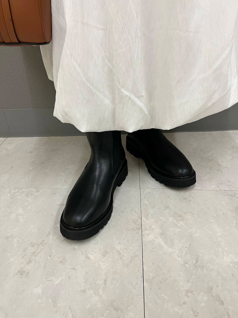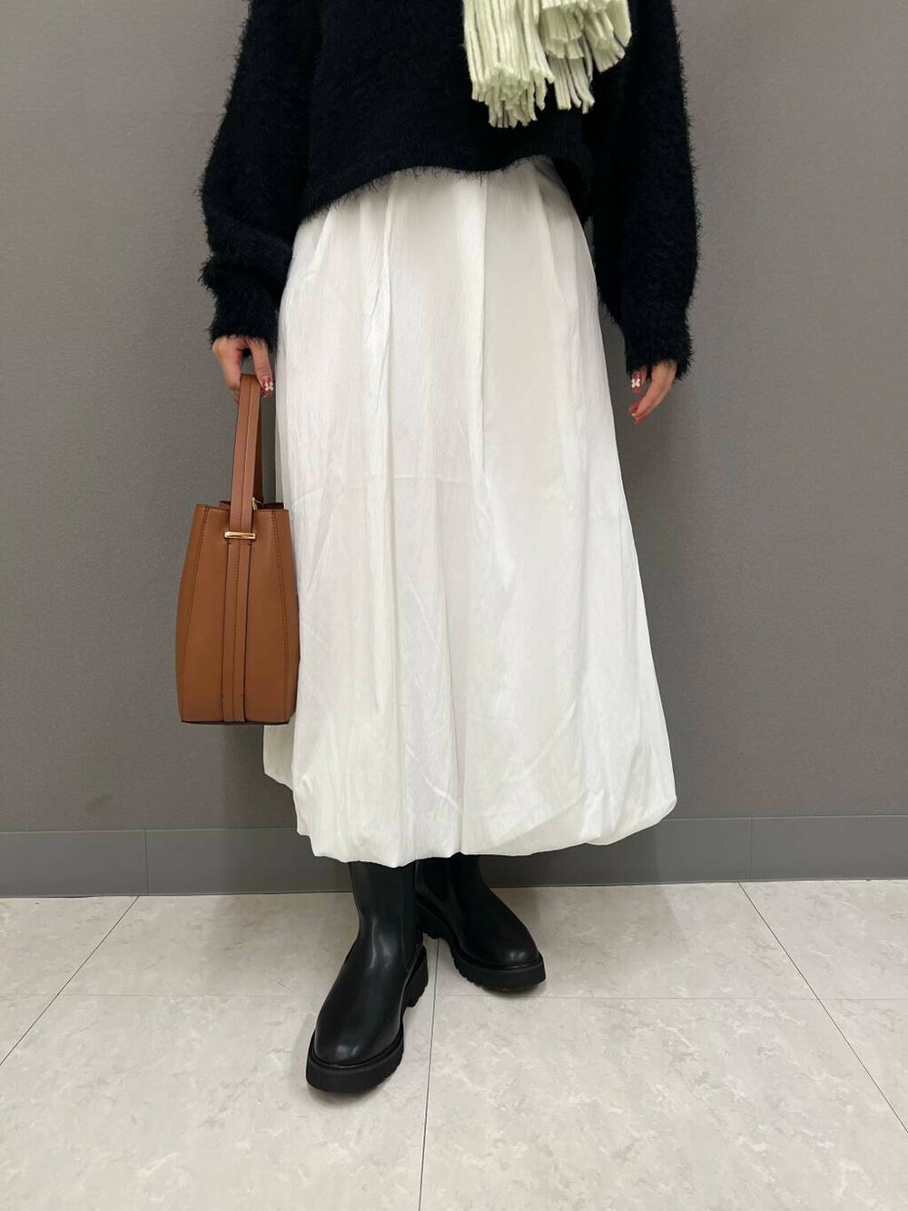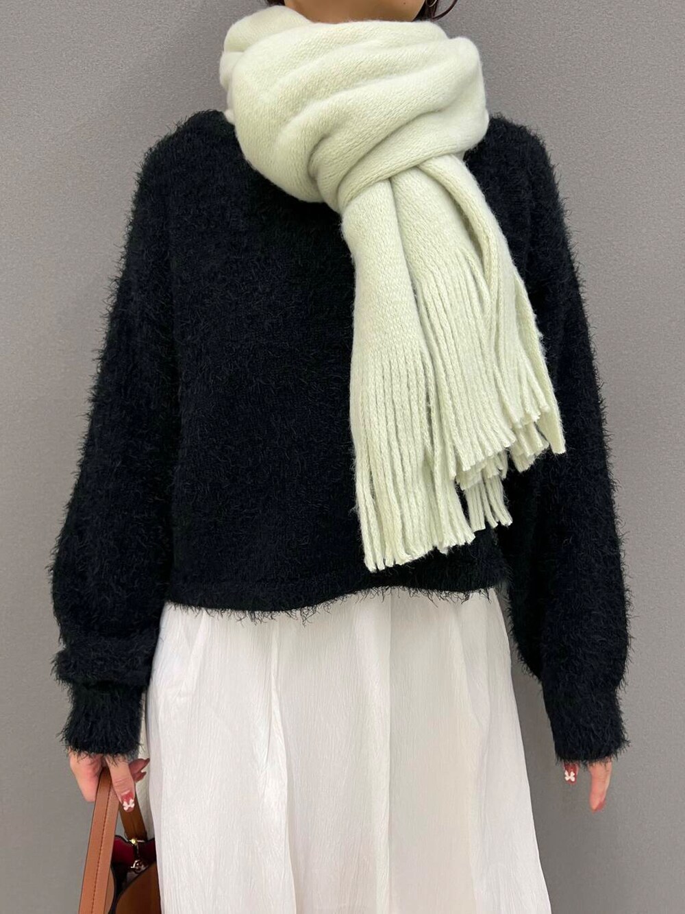 ニットとスカートはモノトーンなので、重たくならないようにカラーのマフラーをプラスしました🧣