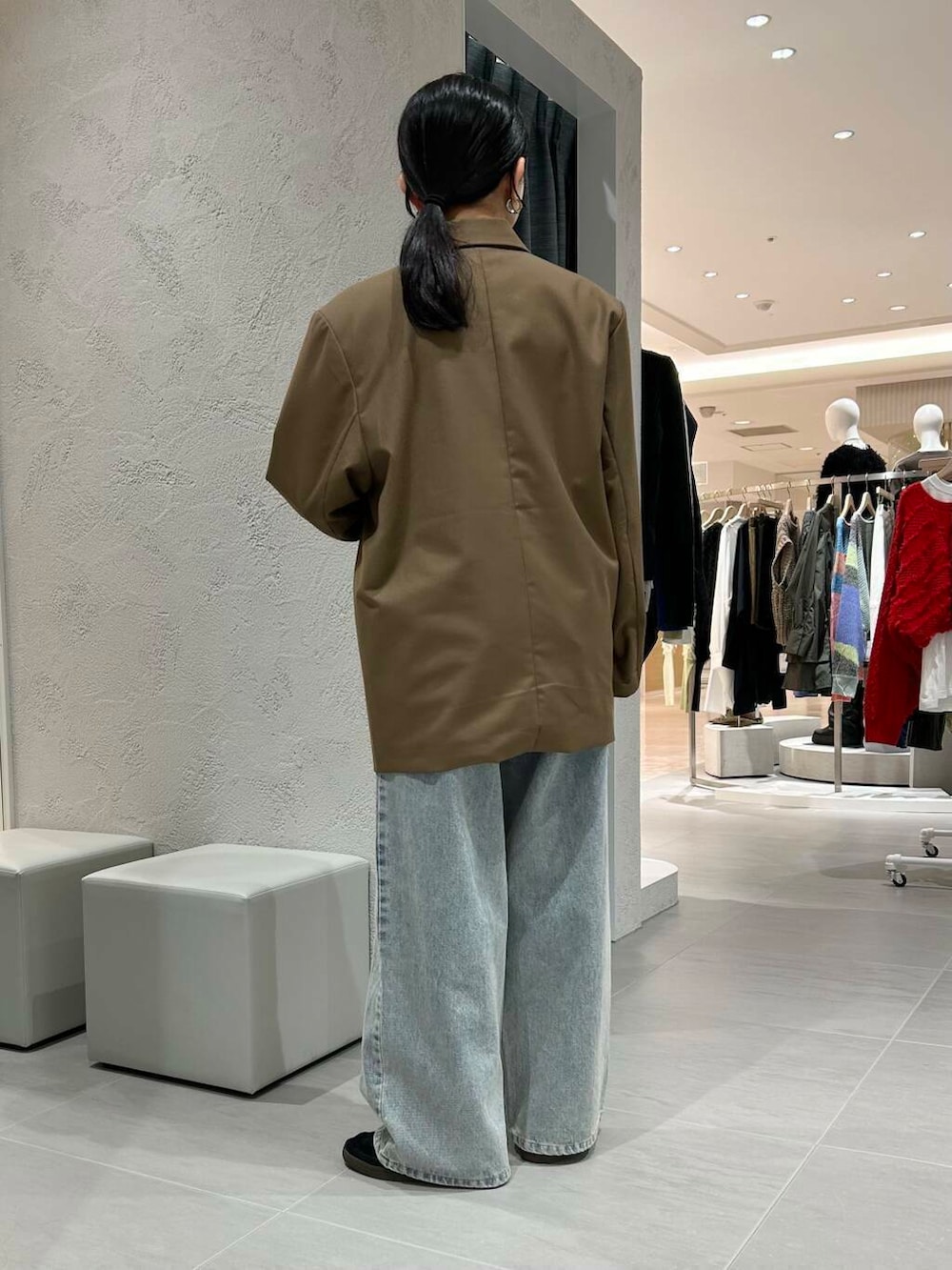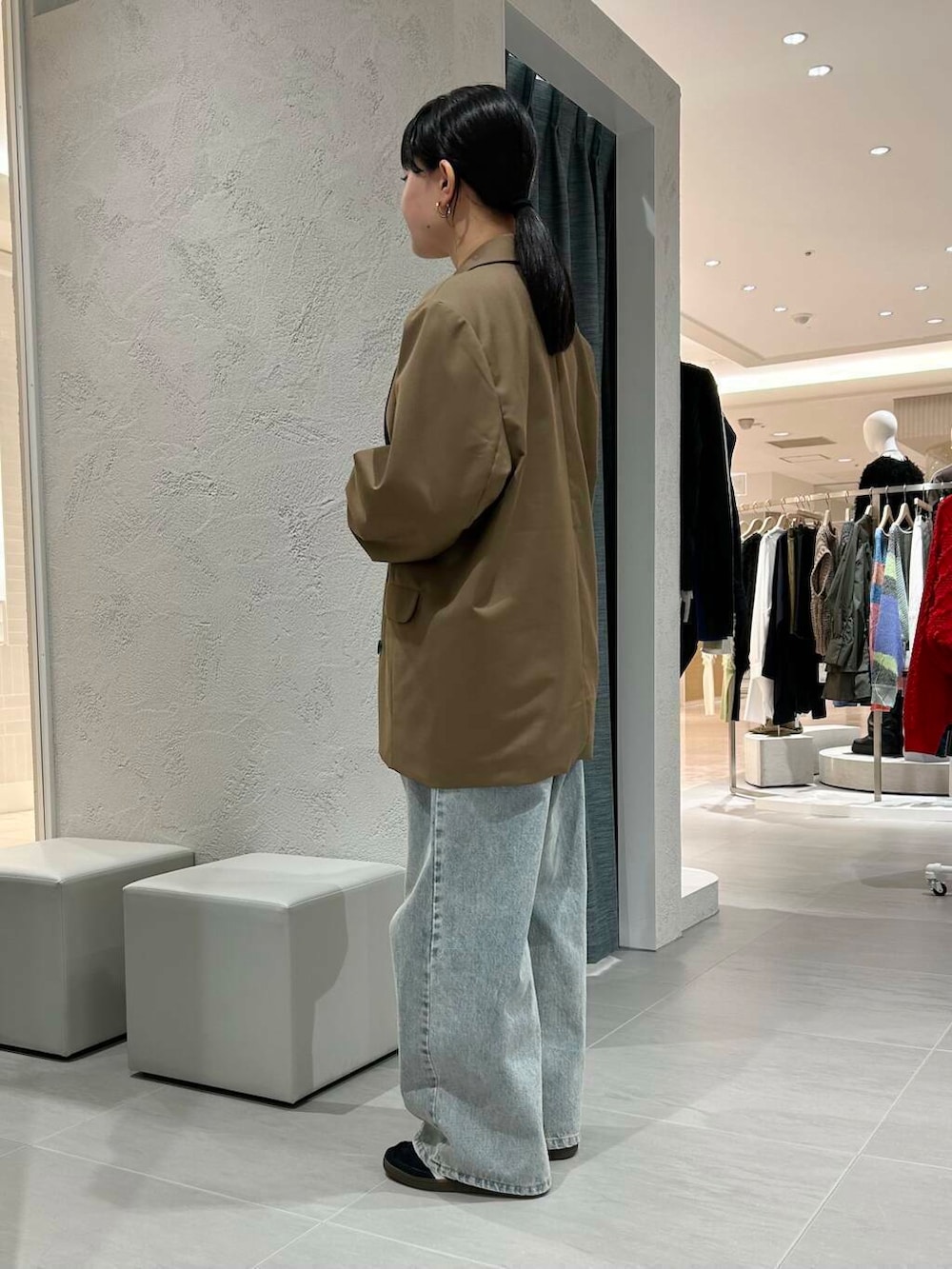 ジャケットとゆるめなコーデにするため、