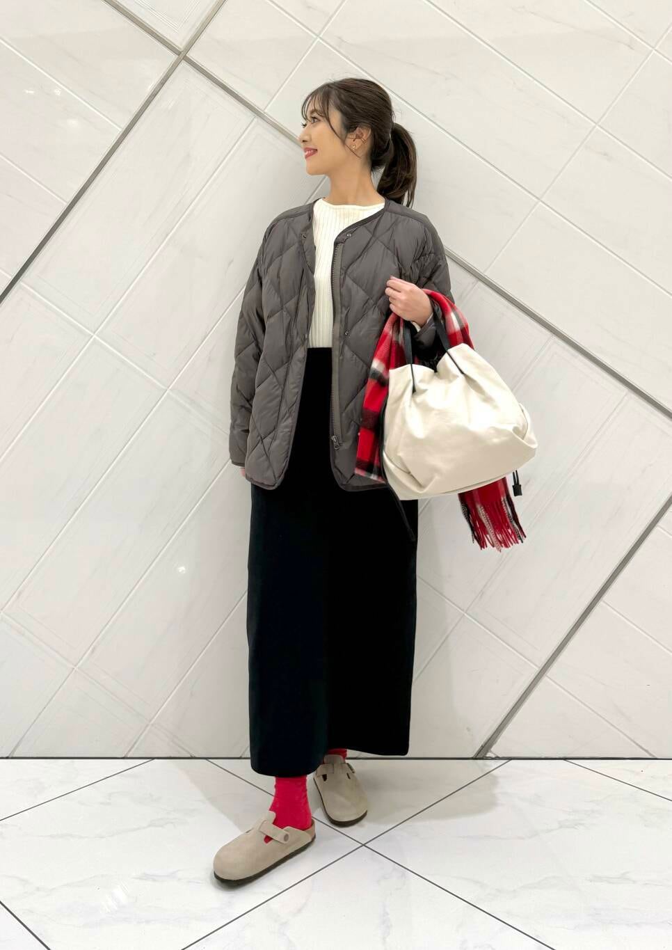本格的なダウンジャケットよりかはライトなアウターで、シーズン長く楽しめます。