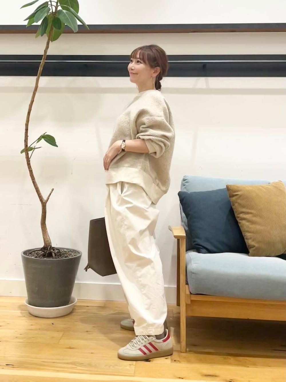 合わせてるのは小柄さんにおすすめのかぐれのコットンクロップドパンツ。
