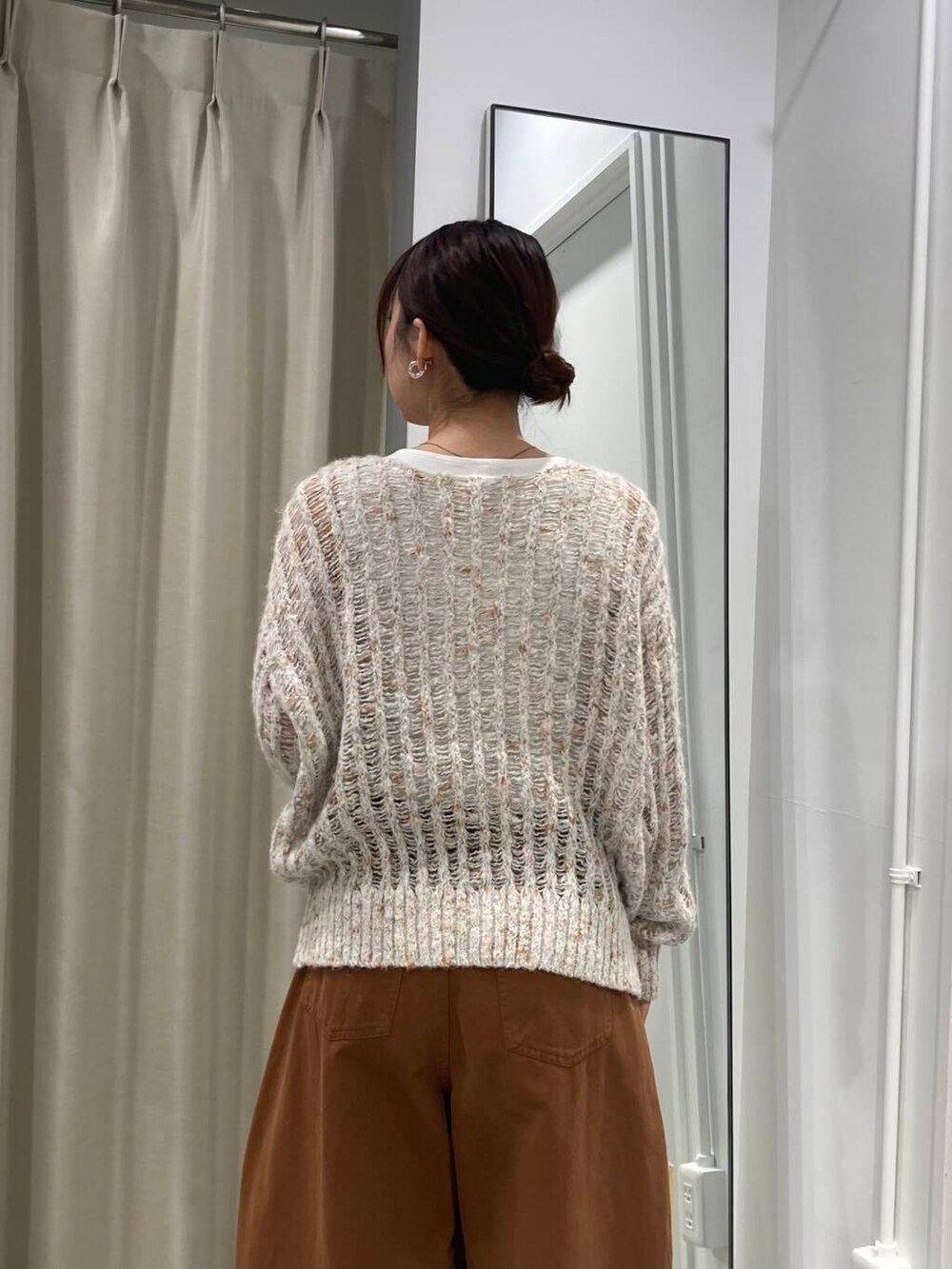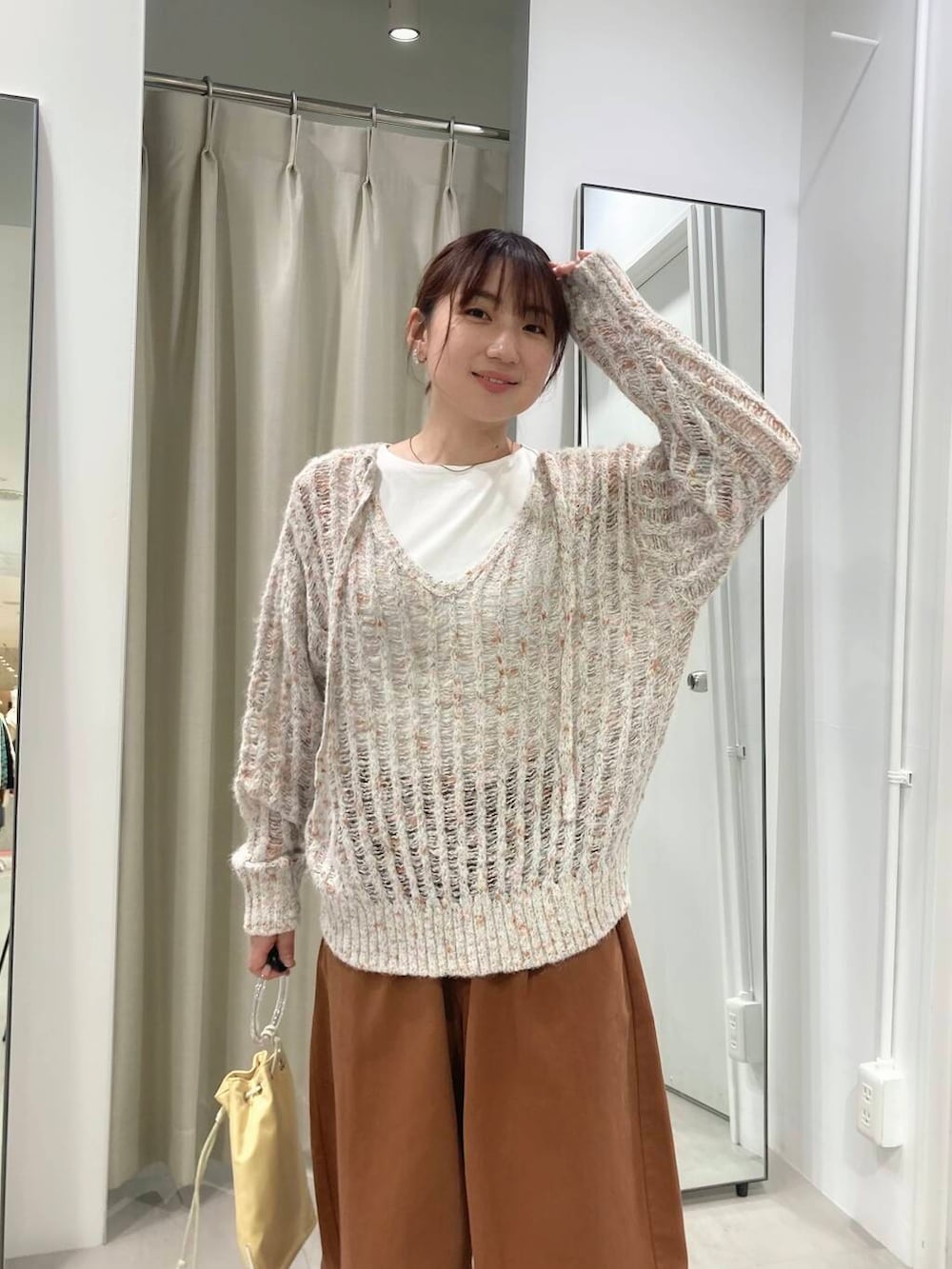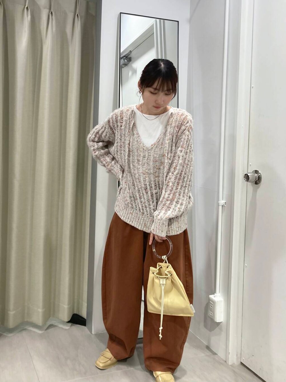 ほっこりカラーのパンツと合わせて秋のお出かけコーデにいかがでしょうか😊