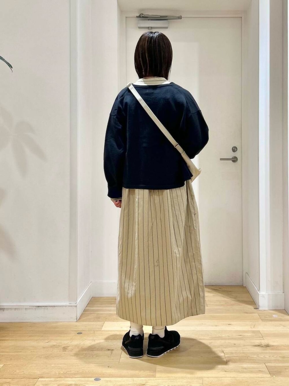首元はスッキリなので、タートルネックを合わせたり、上からスウェットなどのプルオーバーを重ねたりレイヤードもオススメです◎