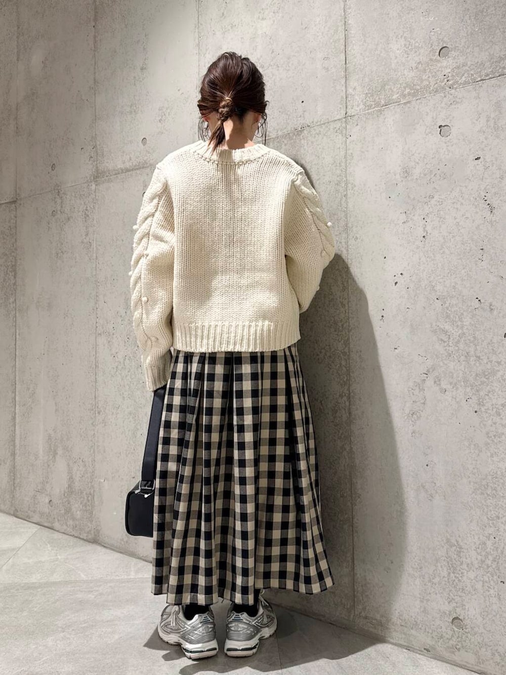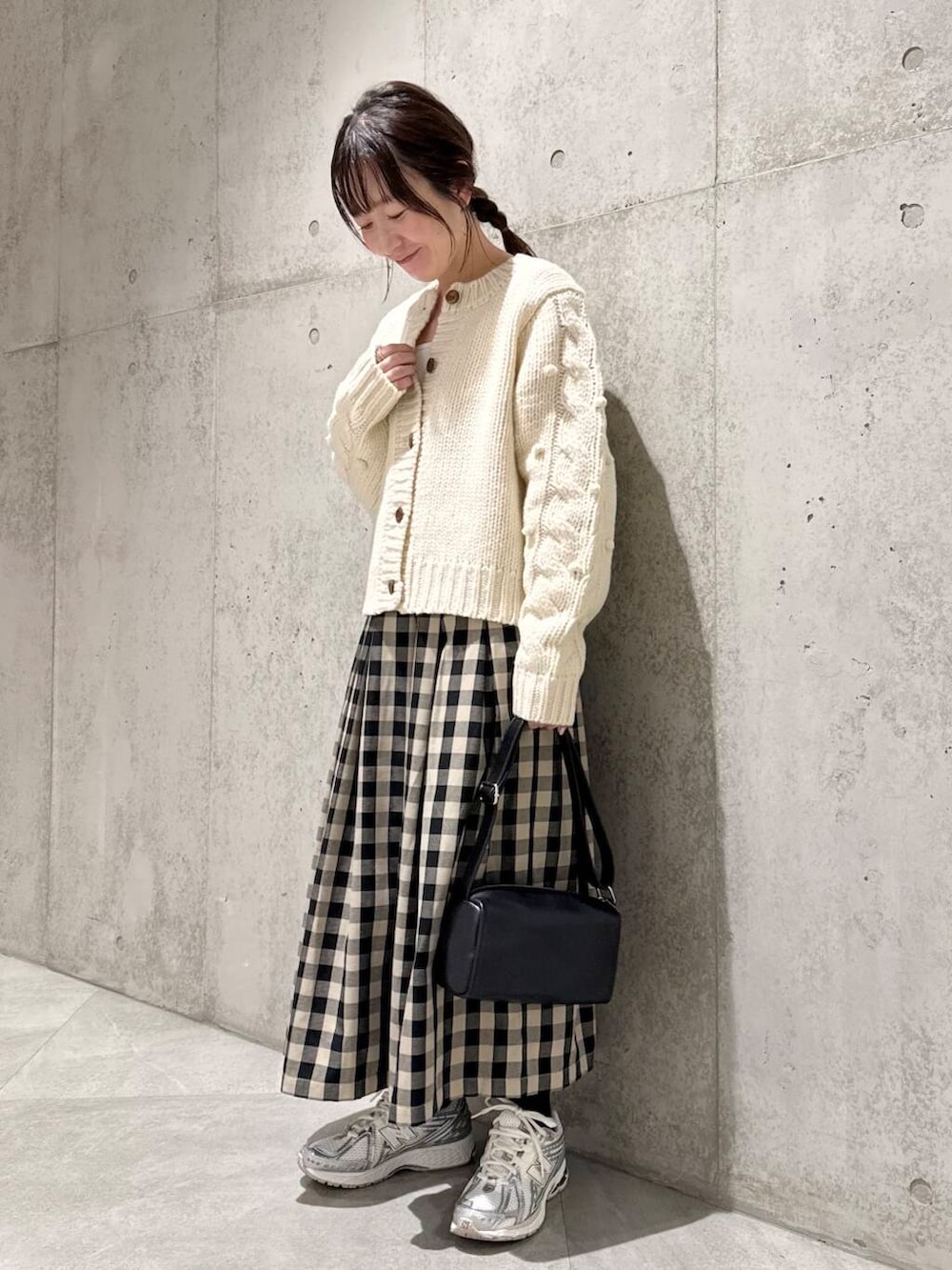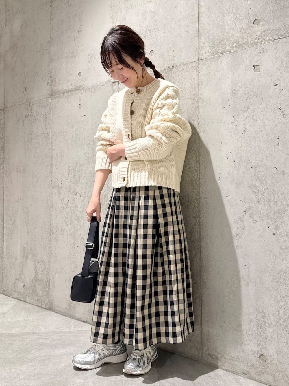 今回は、大きめのギンガムチェックが着映えする、ロングスカートと合わせた、ガーリーコーディネート。