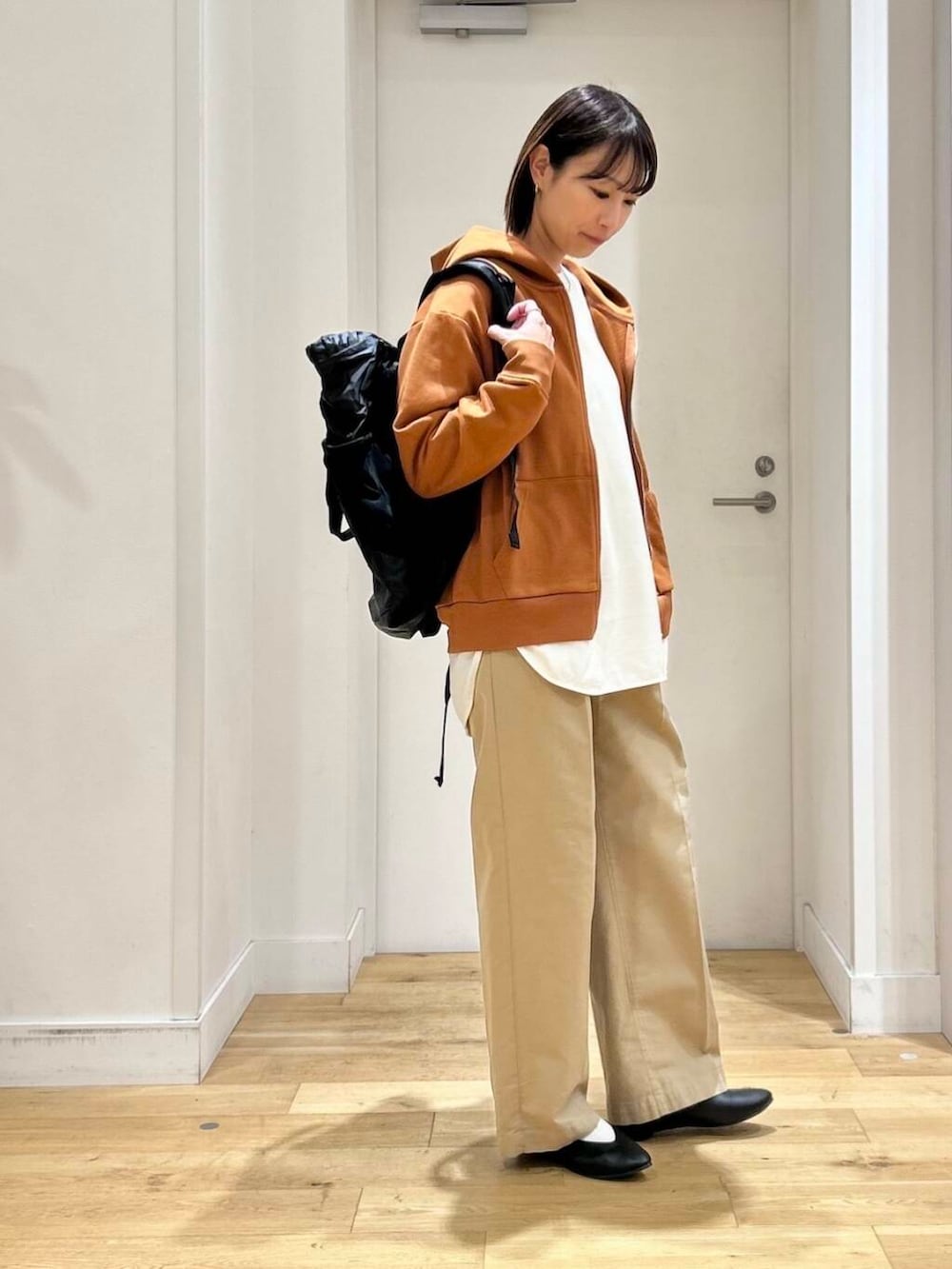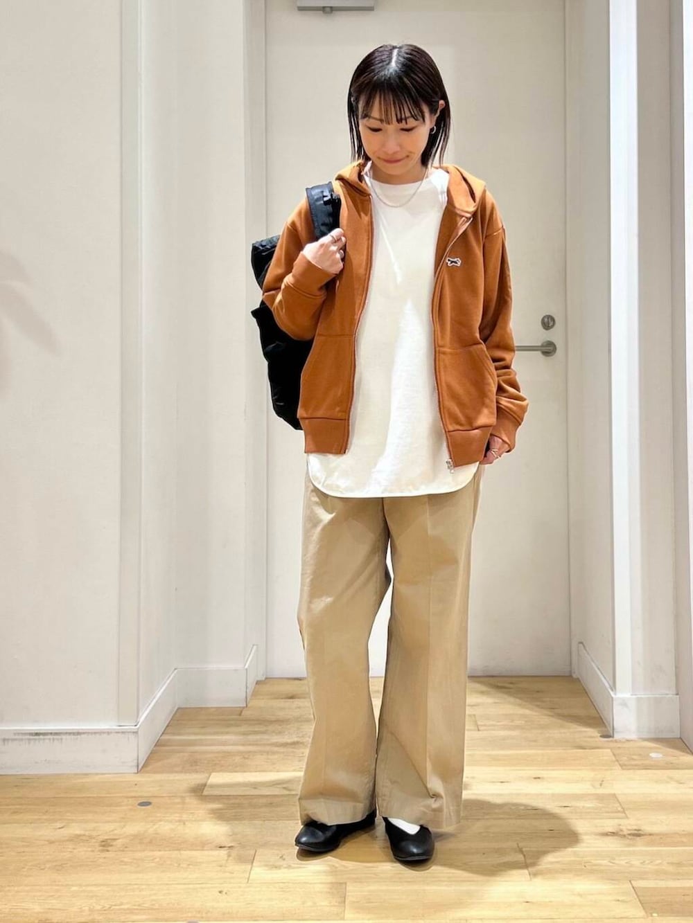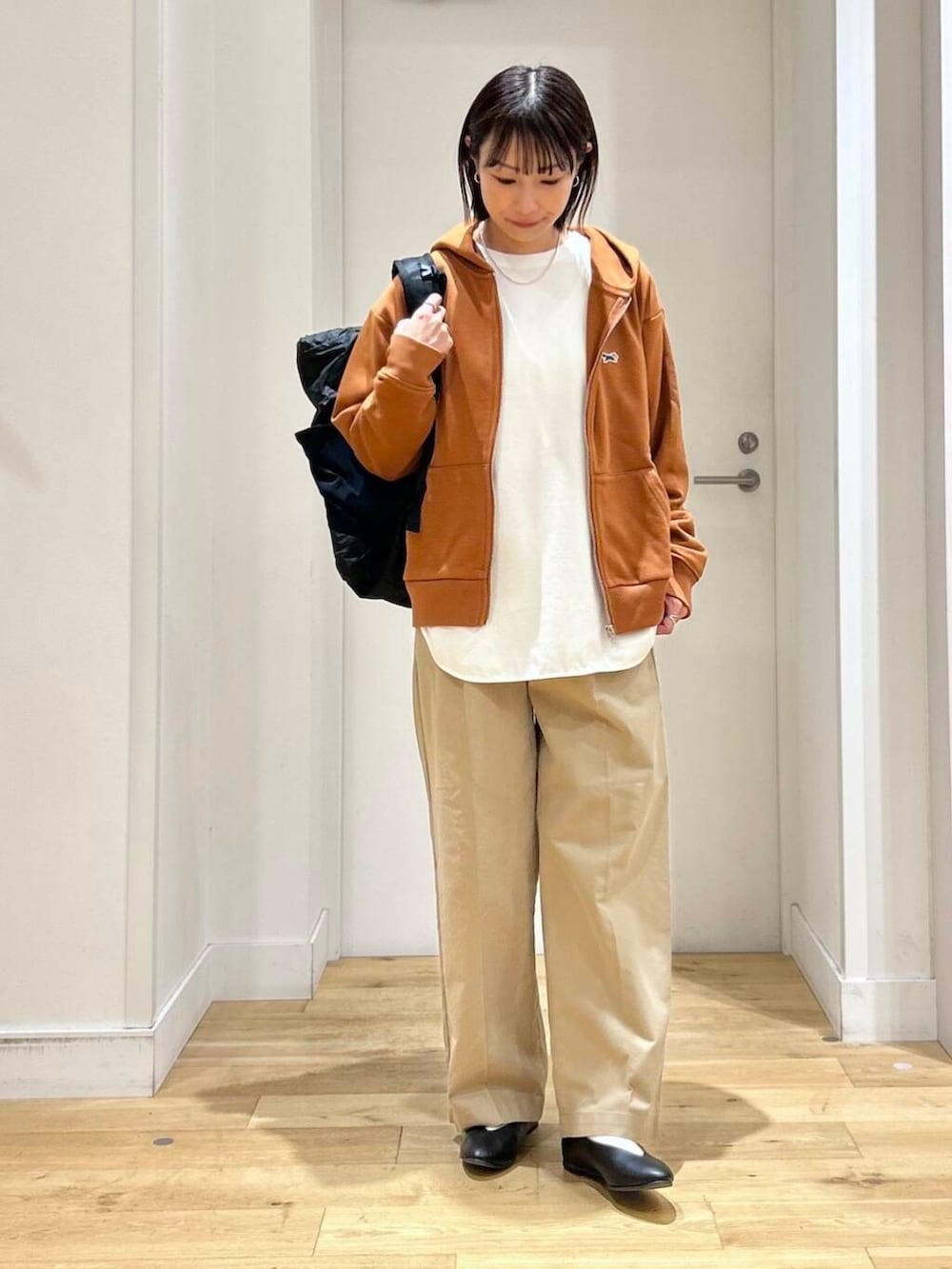 チノパンとパンプス合わせてラフになりすぎないようにコーディネートしてみました。