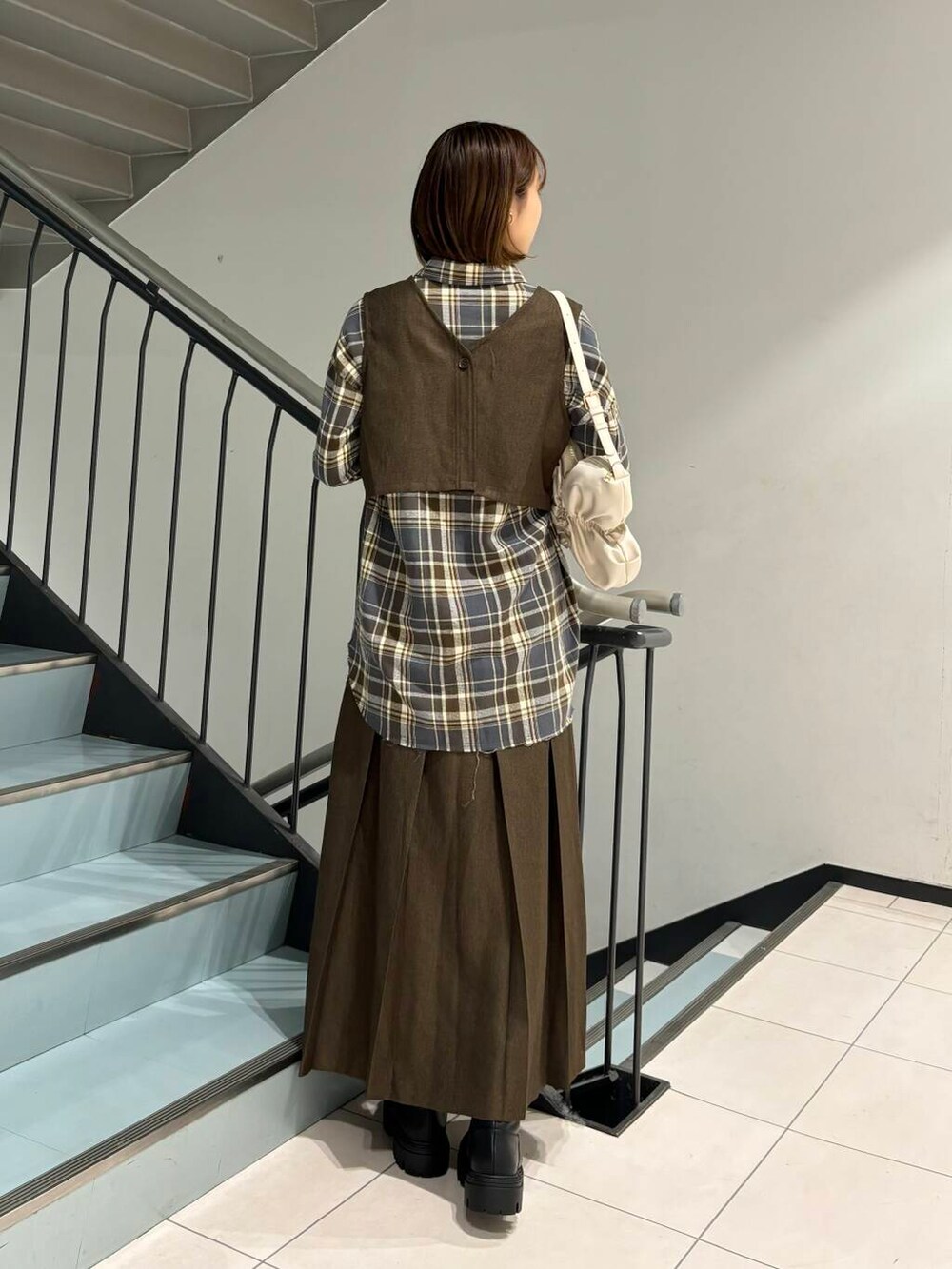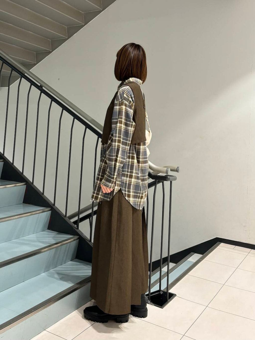 チェックシャツもブラウンにしてワントーンでまとめてみました🍂