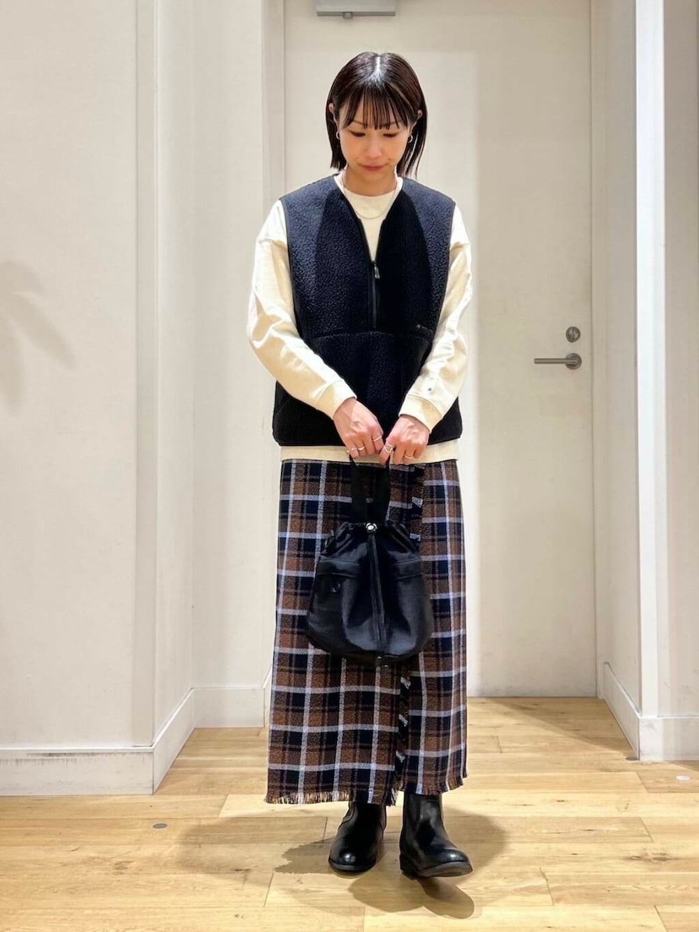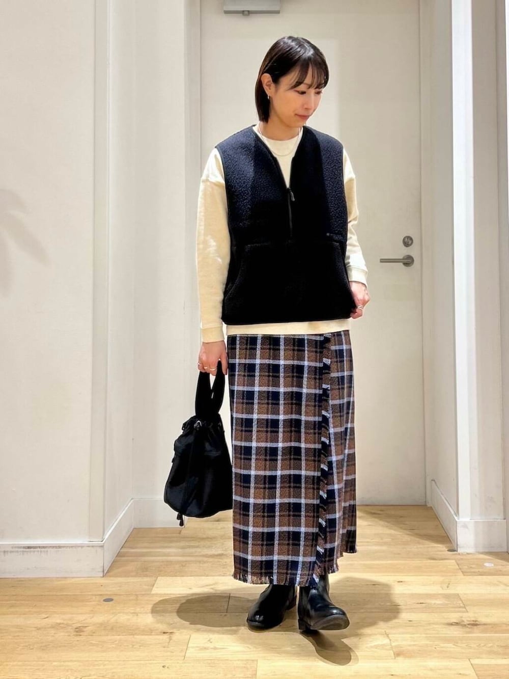 DOORSフリンジチェックラップストレートスカート