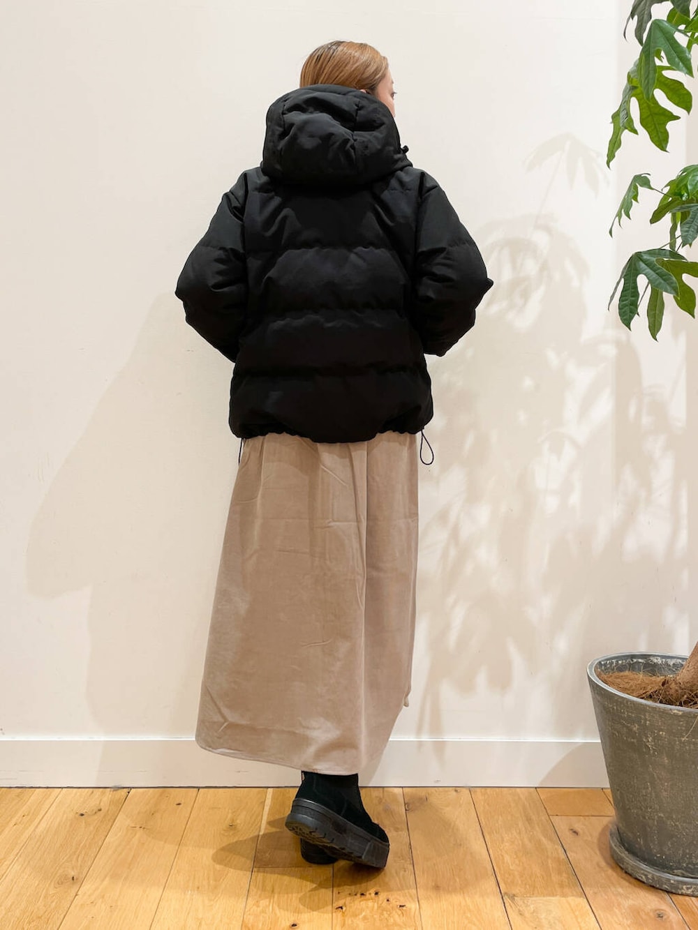 袖や身幅は広く着丈はスッキリとしていてドローコードで調節もできるデザイン。
