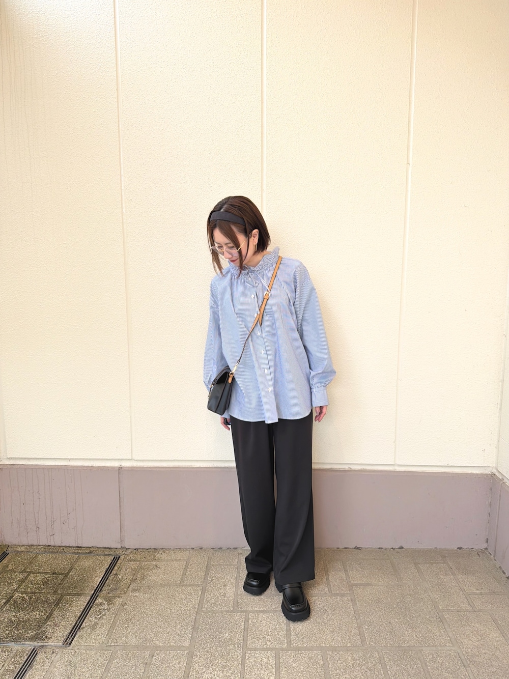 カーディガンはそこまで大きめの作りではないので、シンプルにスラックス合わせでキレイめ合わせるのがオススメ。