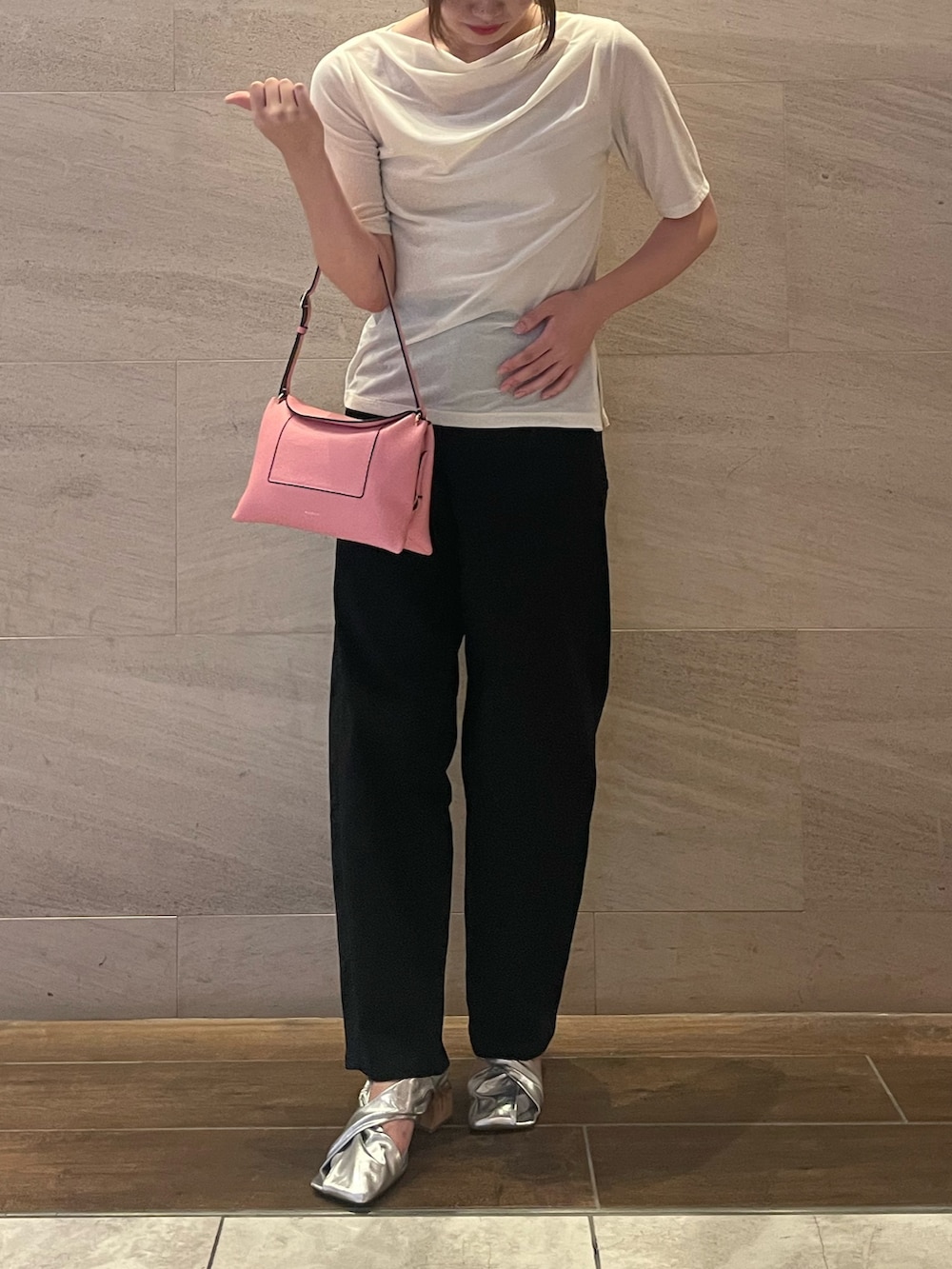 大きすぎず小さすぎずちょうど良いサイズです。少し丸い感じのデザインになっているので、小さめのトップスに合う印象です。