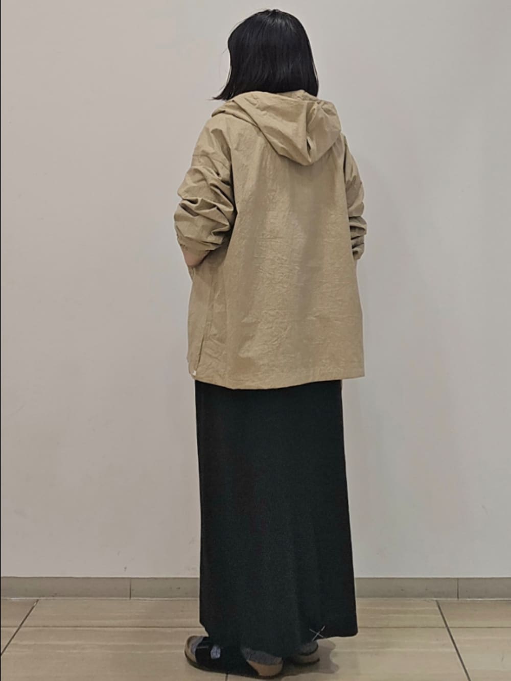 スカートは一枚あると便利な黒のIラインシルエットです。