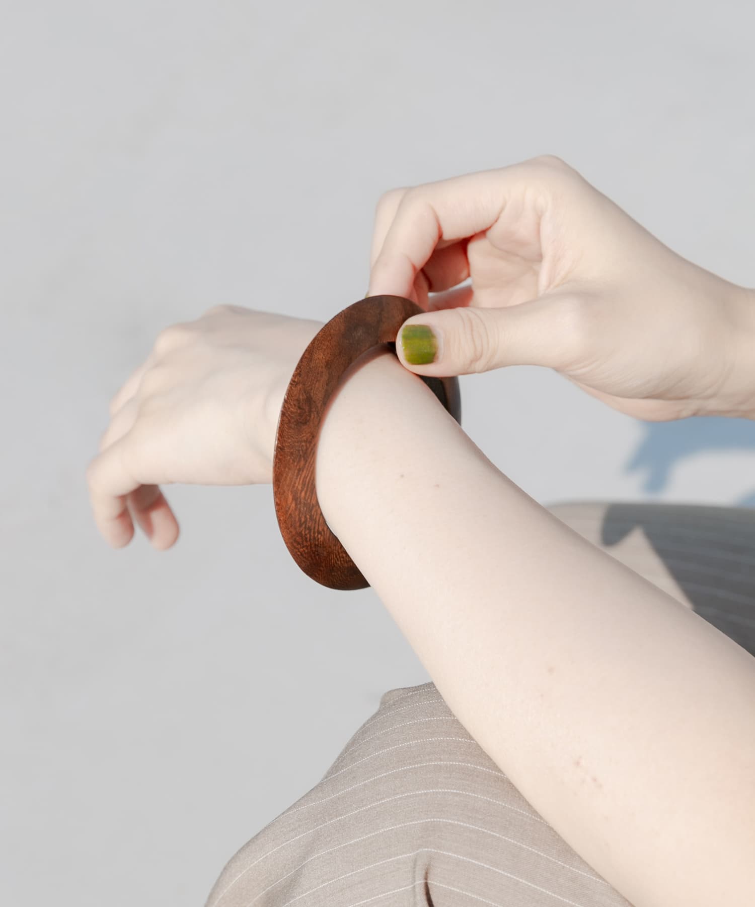 手元はウッドバングルで夏らしく🍉