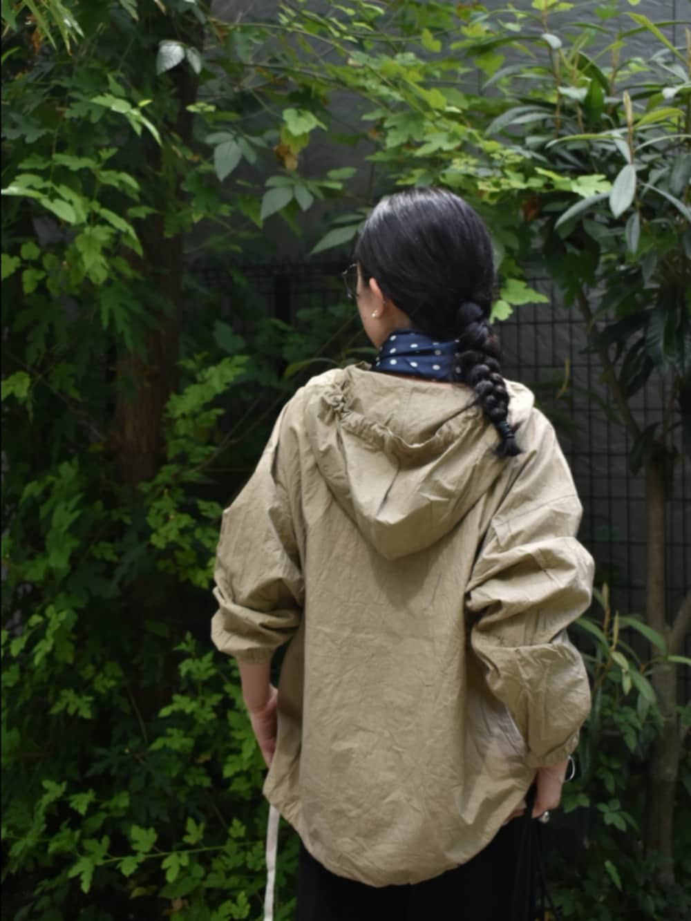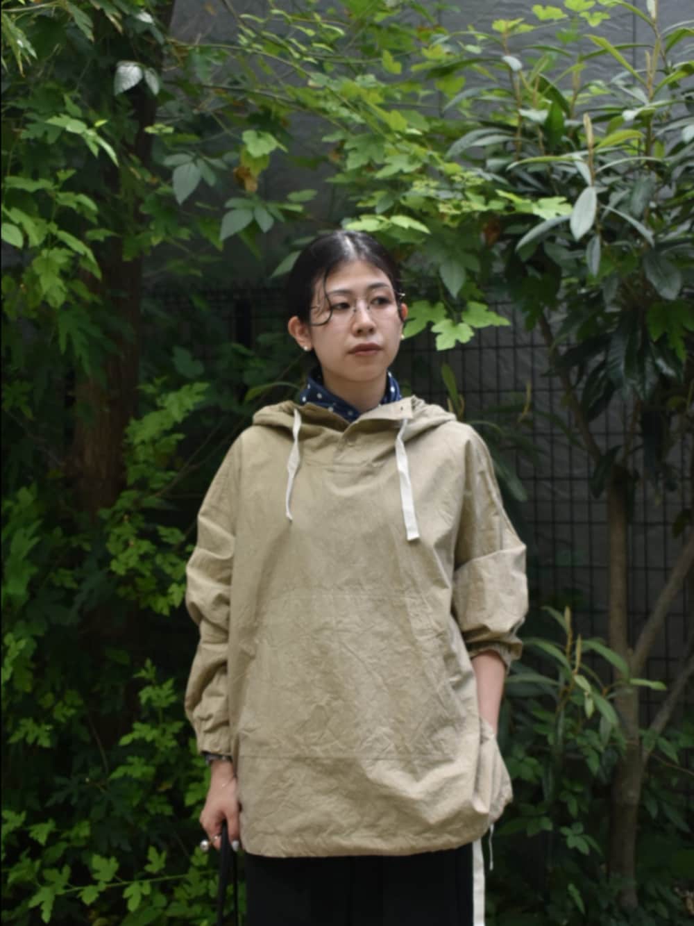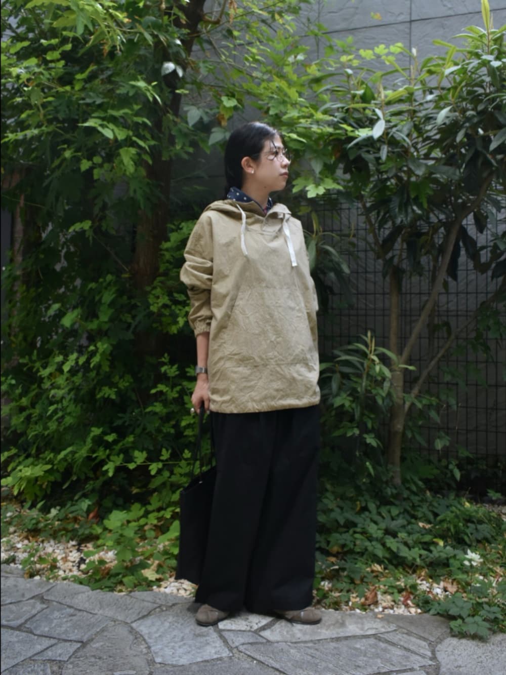 フランス展示会にも出されていたアノラックで少しカジュアルなスタイリングを組んでみました。