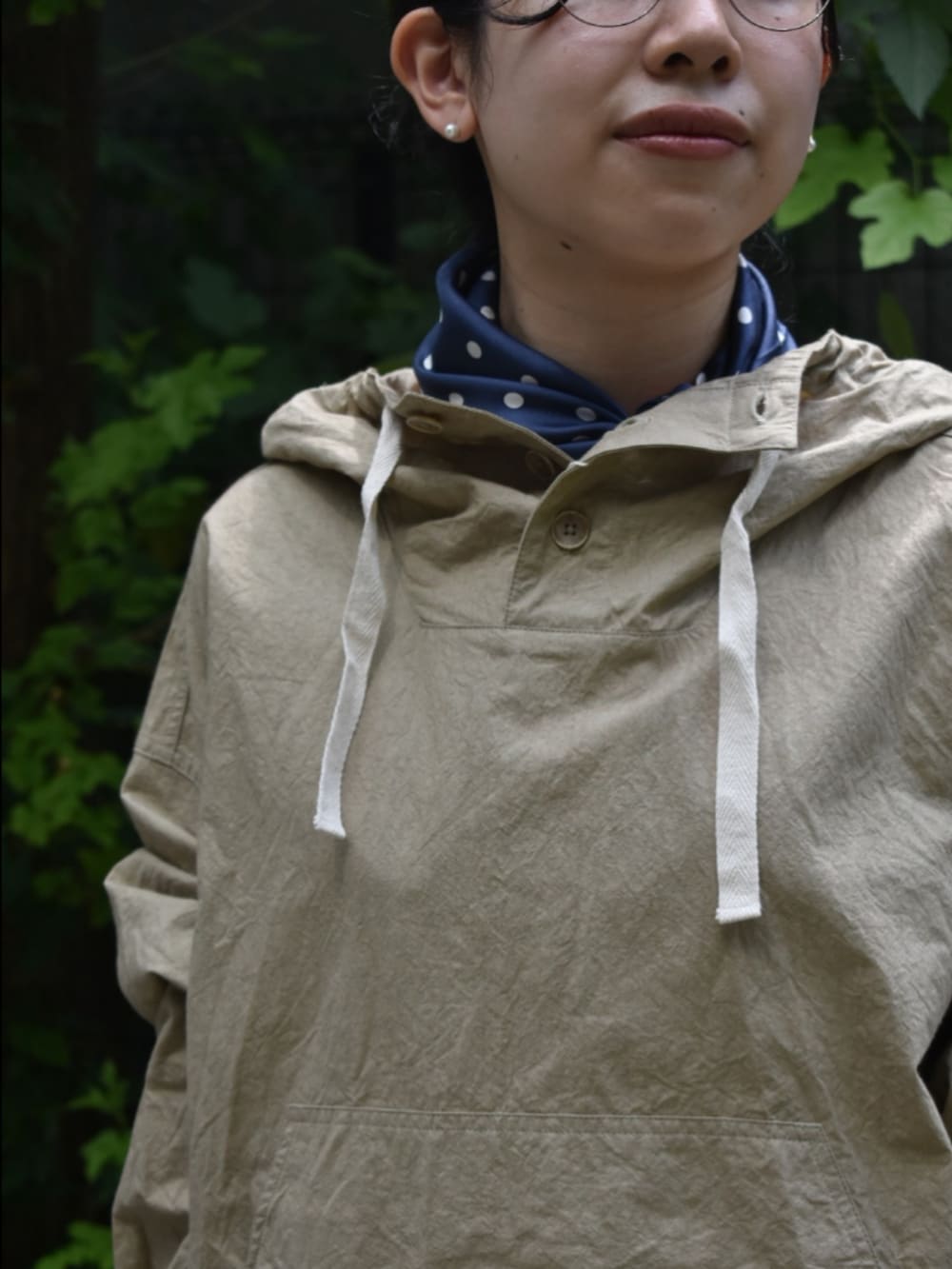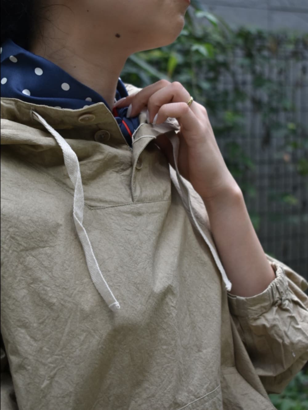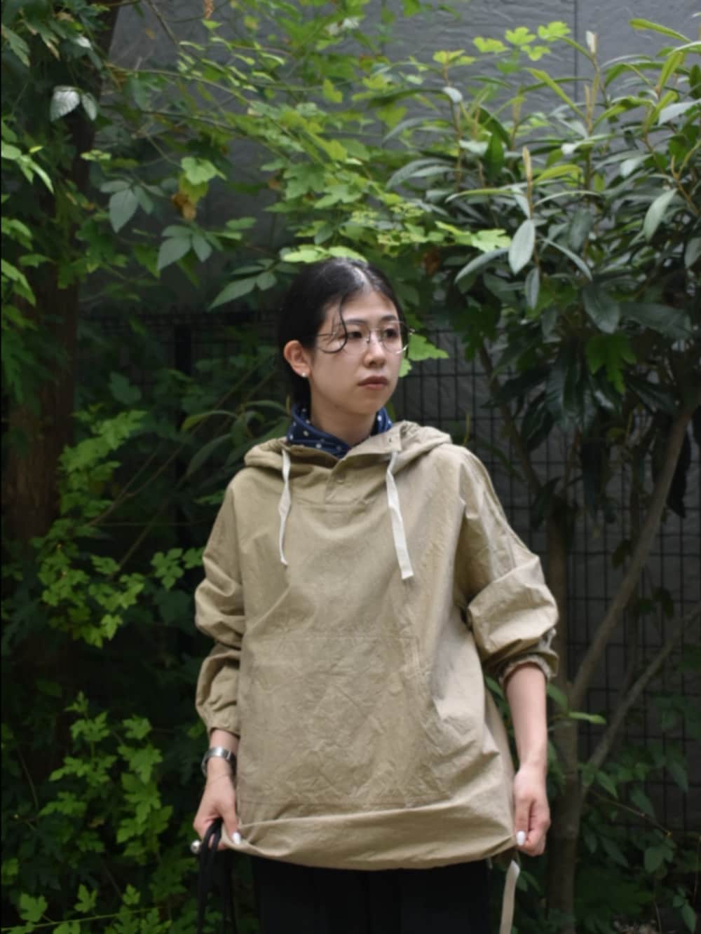 フランス展示会にも出されていたアノラックで少しカジュアルなスタイリングを組んでみました。