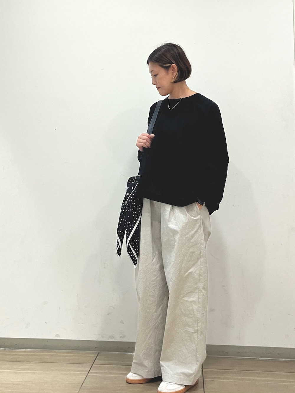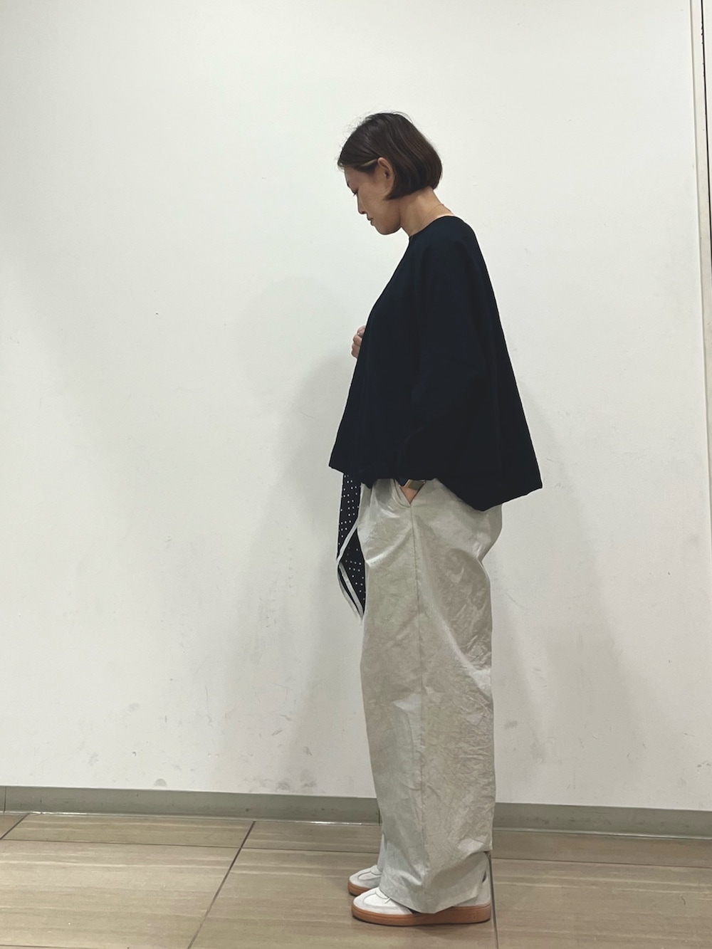 ウールガーゼのプルオーバーにワイドパンツを合わせました。