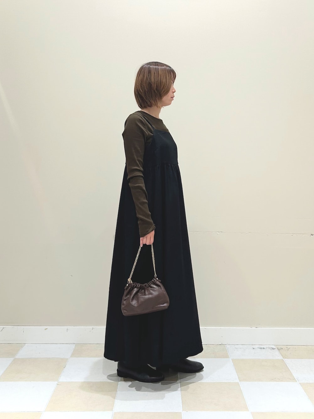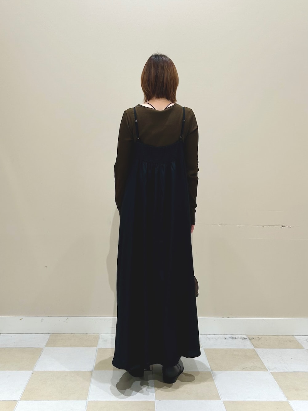 リブロンT付きのキャミワンピースにブーツで秋ワンピーススタイルに。