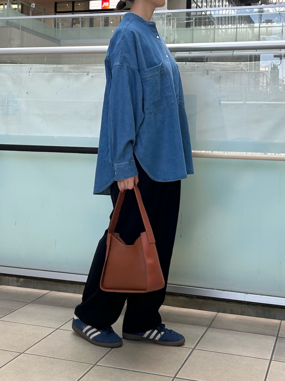 カジュアルになりすぎないように落ち感のあるパンツを合わせました。
