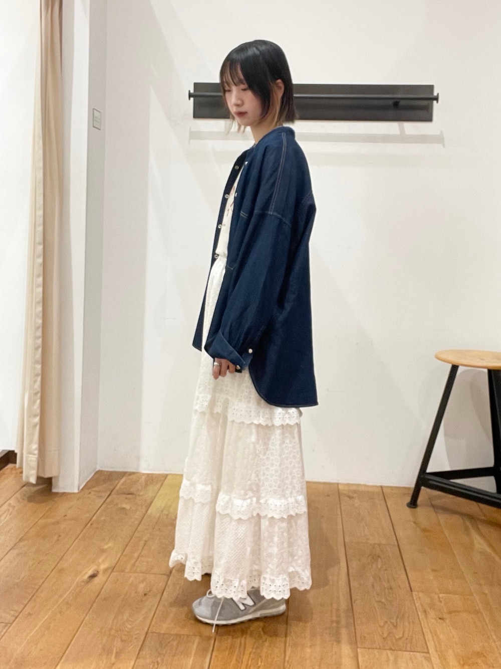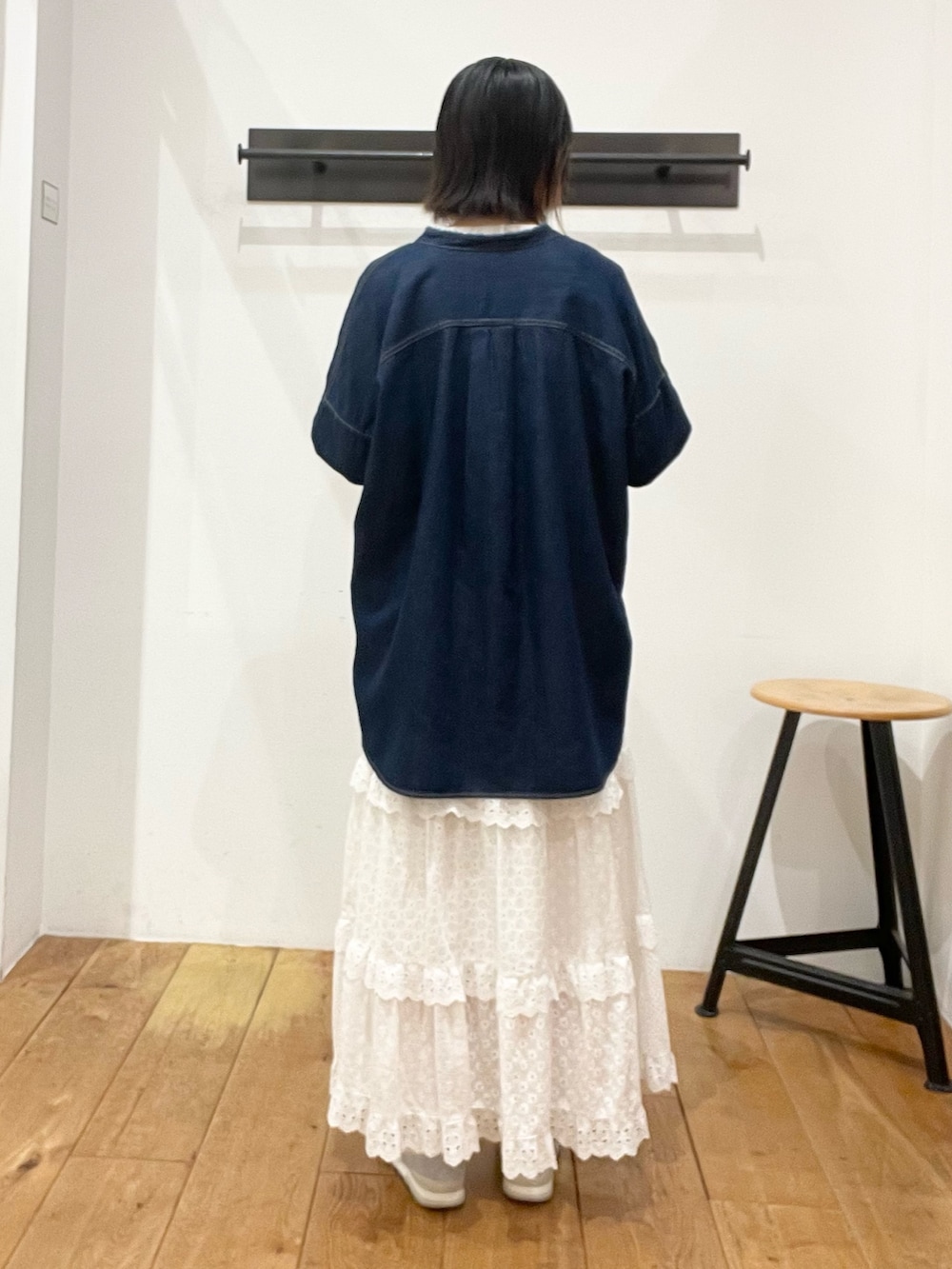 広がりを抑えたシルエットで甘くなりすぎずコーデに取り入れやすいスカートです。デニムとの相性抜群です。