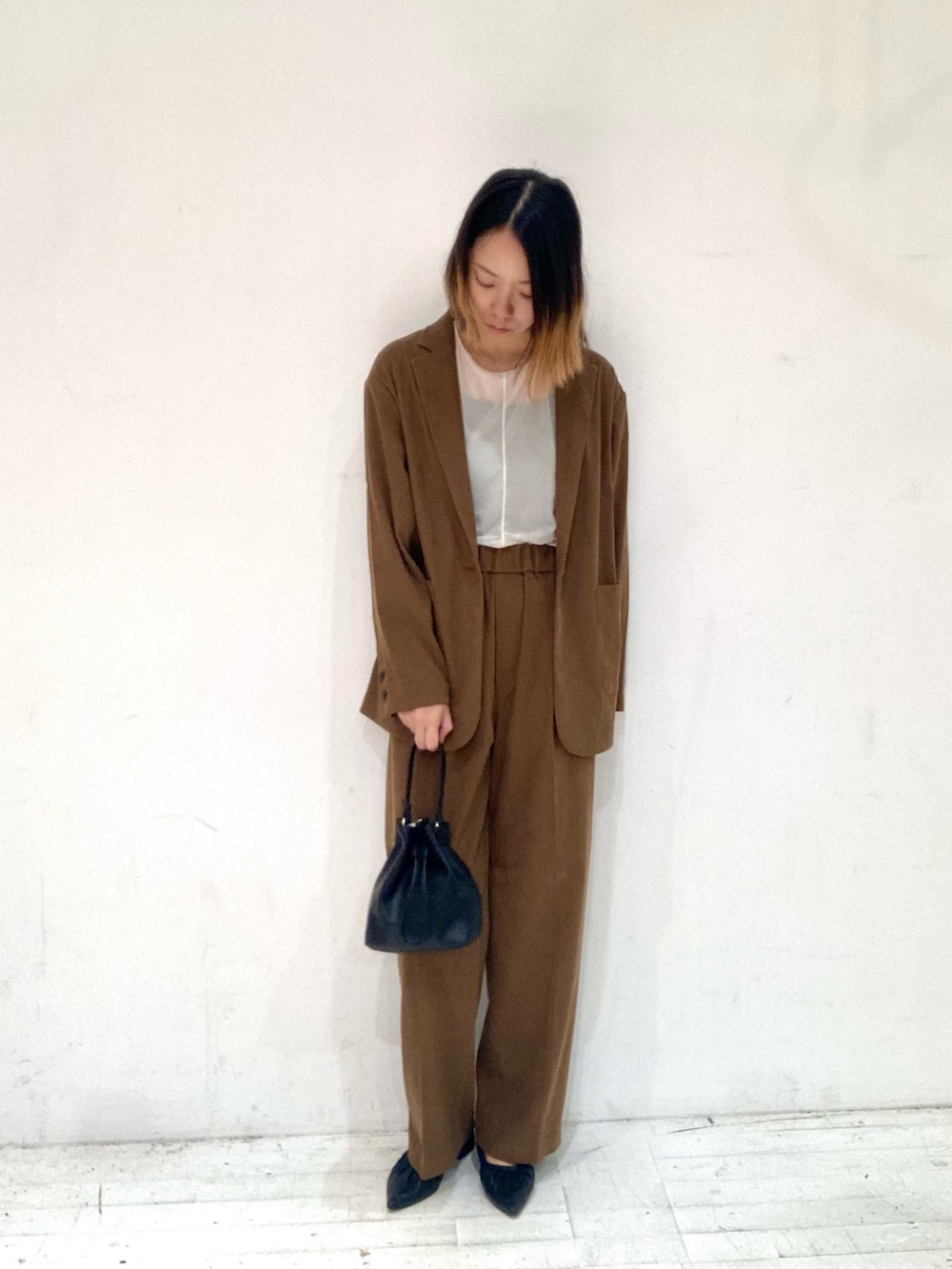 秋を感じるジャケットとパンツのセットアップコーデです♪