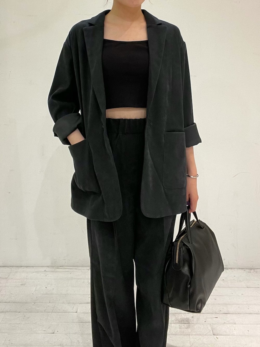 スウェードの生地で、質感も良く高見えするセットアップです✨