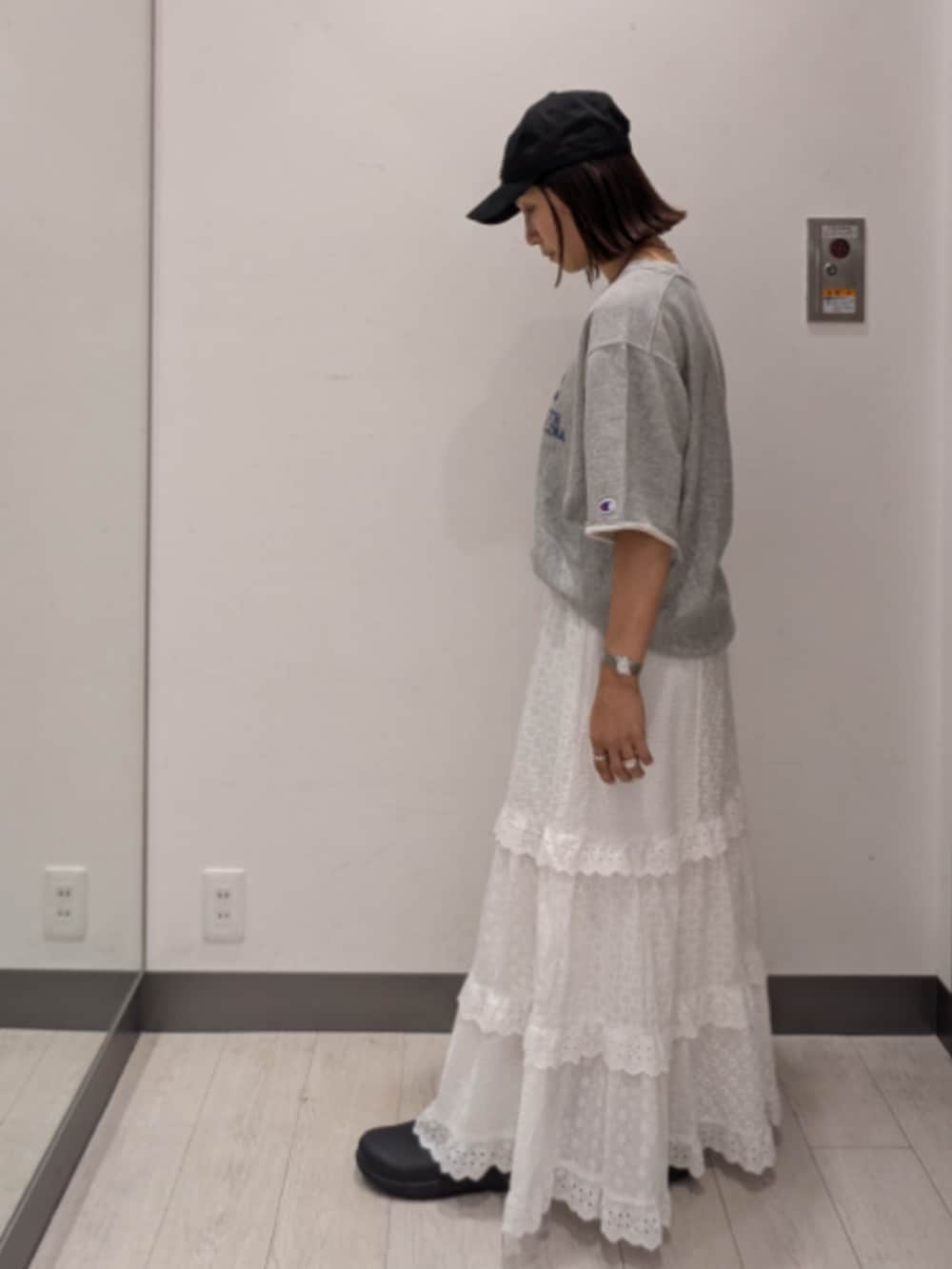 スカートはボリュームが出すぎないスッキリしたロング丈でトップスとのバランスも取りやすいです!甘くなりすぎない感じもGood🧡
