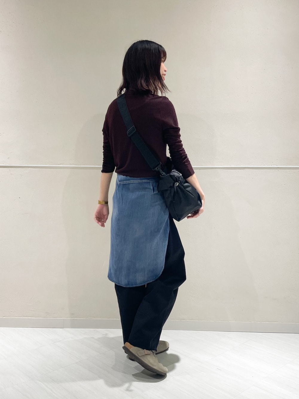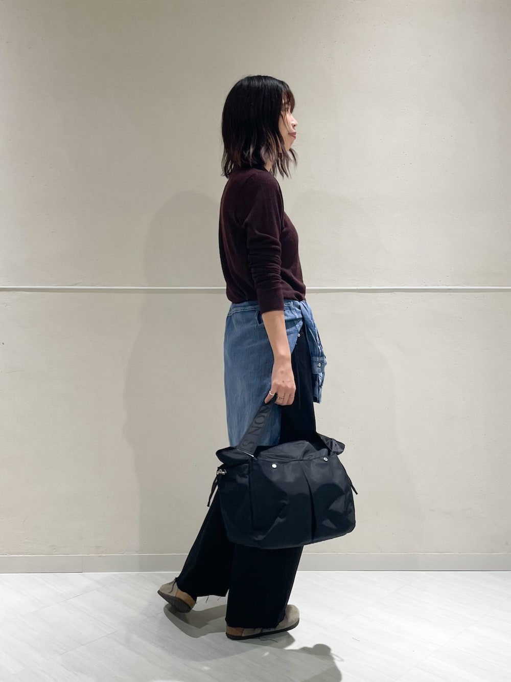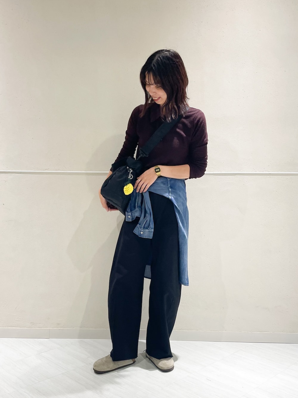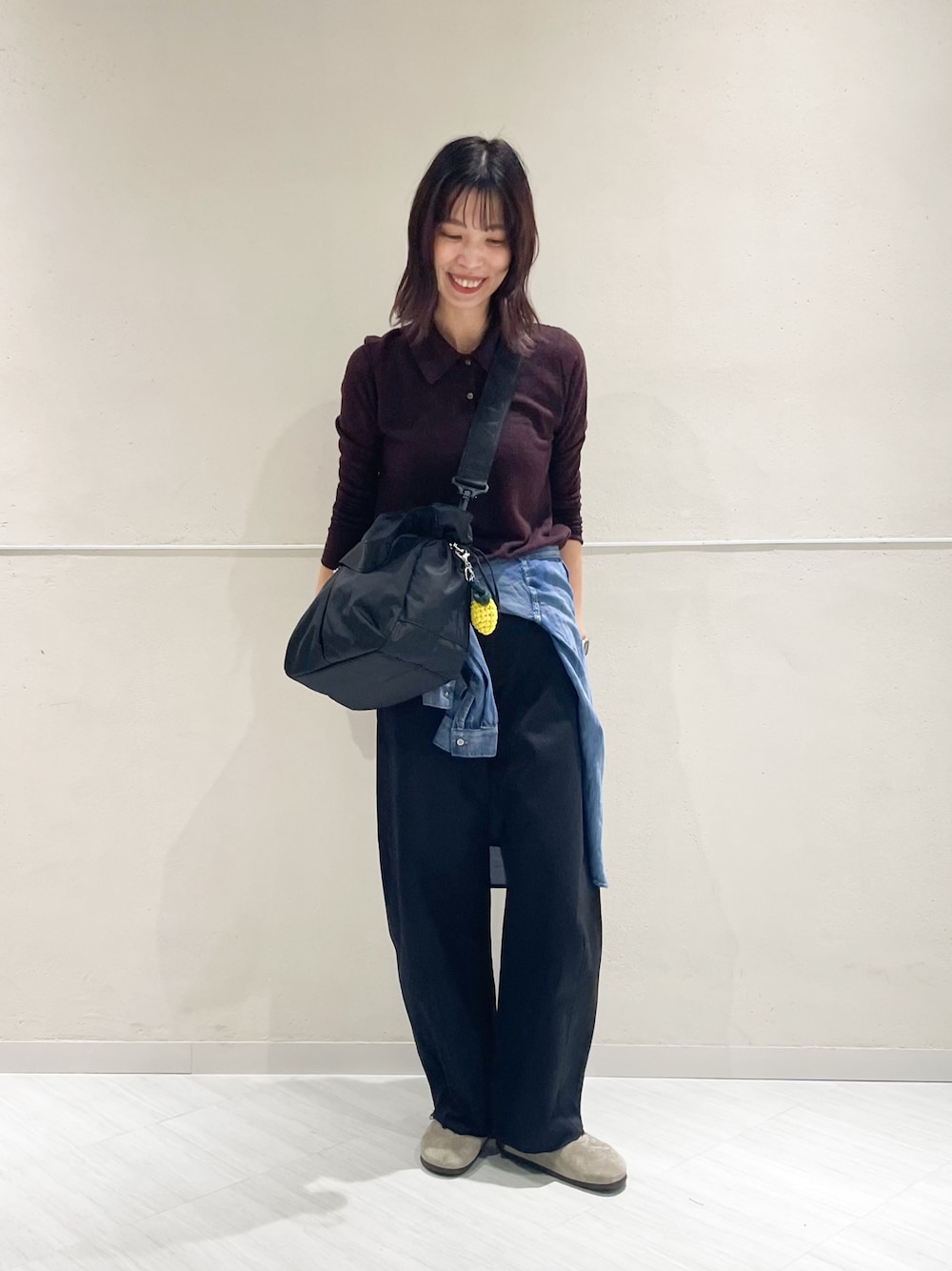 透け感のあるポロニットで涼しくありながらも、落ち着いたブラウンの色味で季節の変わり目を楽しんでいただけるコーディネートです🍁