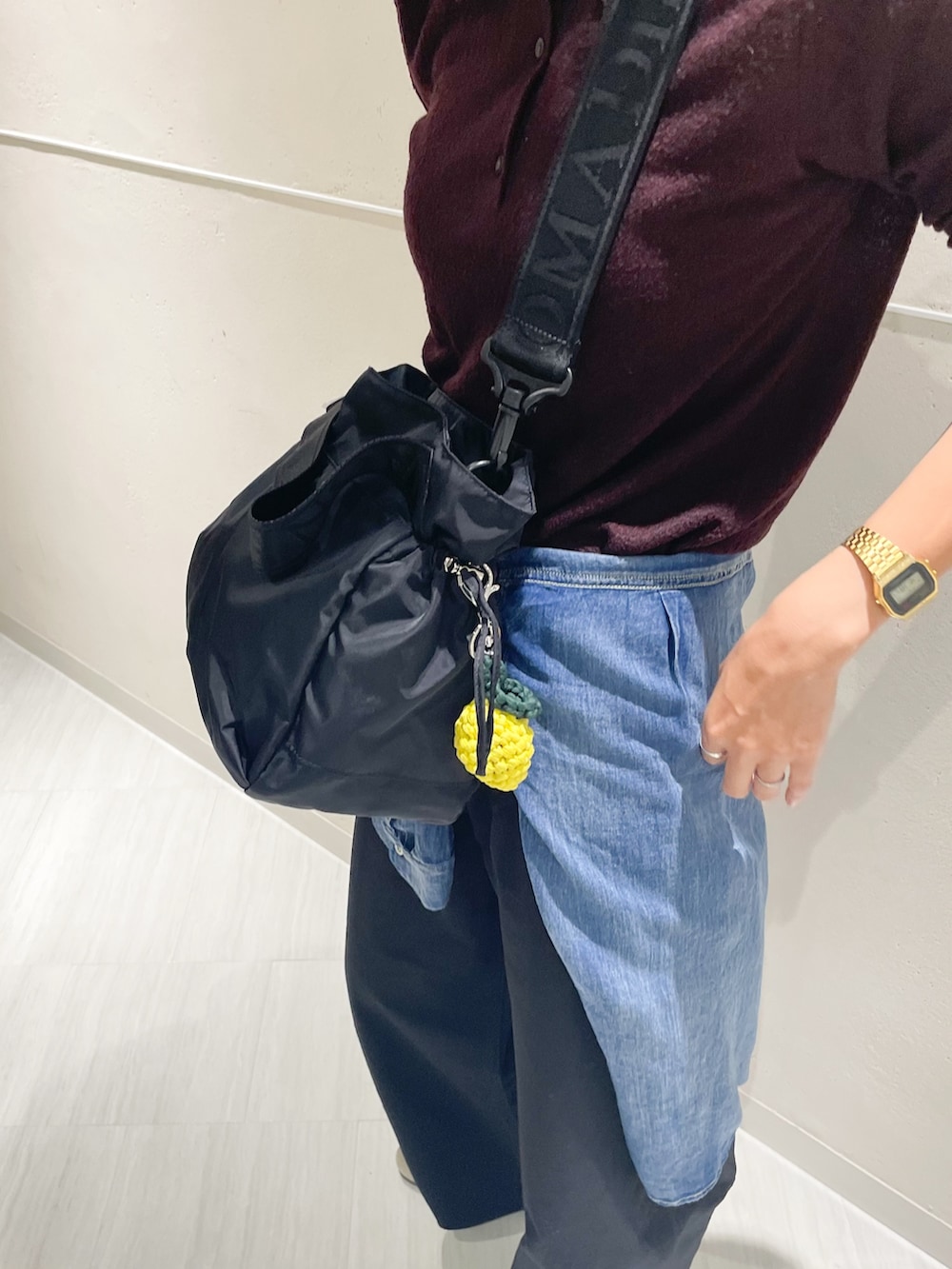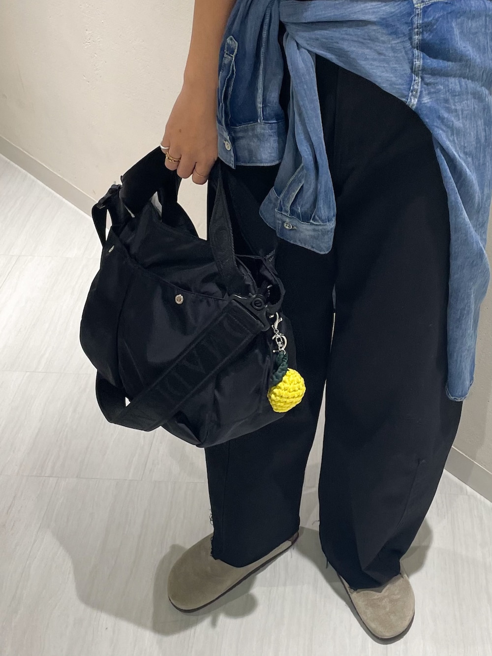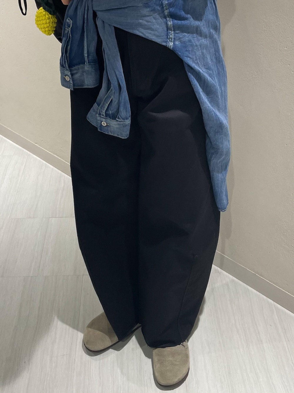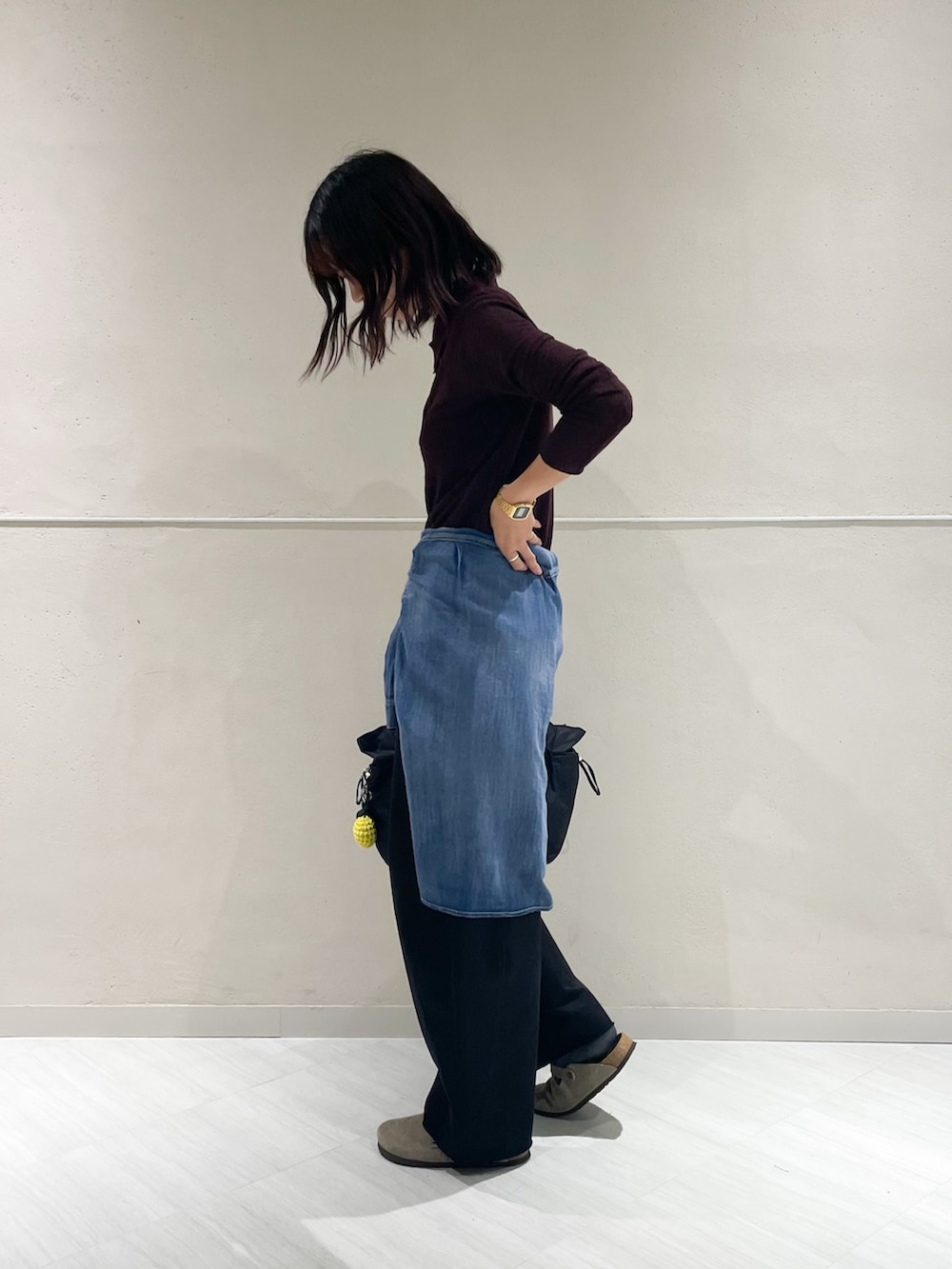 腰に巻いたデニムシャツもシアー感があるので冷房避けにも◎ はおらない時は腰巻にするとこなれ感も出るのでオススメです😌