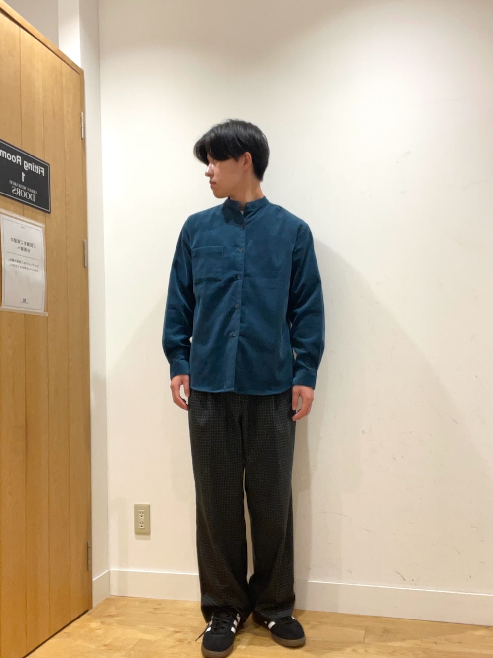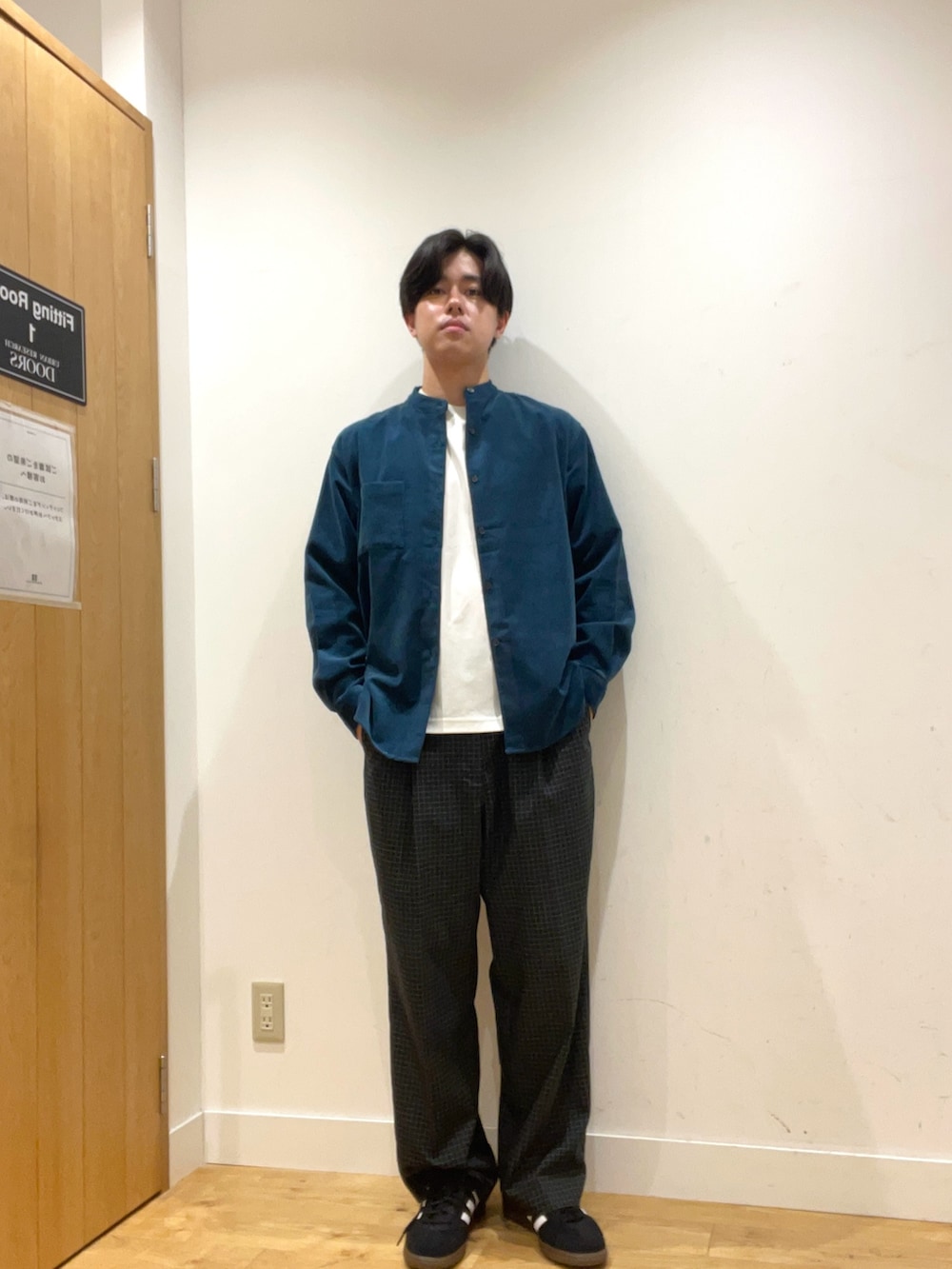 ブルーグリーンのコーデュロイシャツ、色味が鮮やかでおすすめです。
