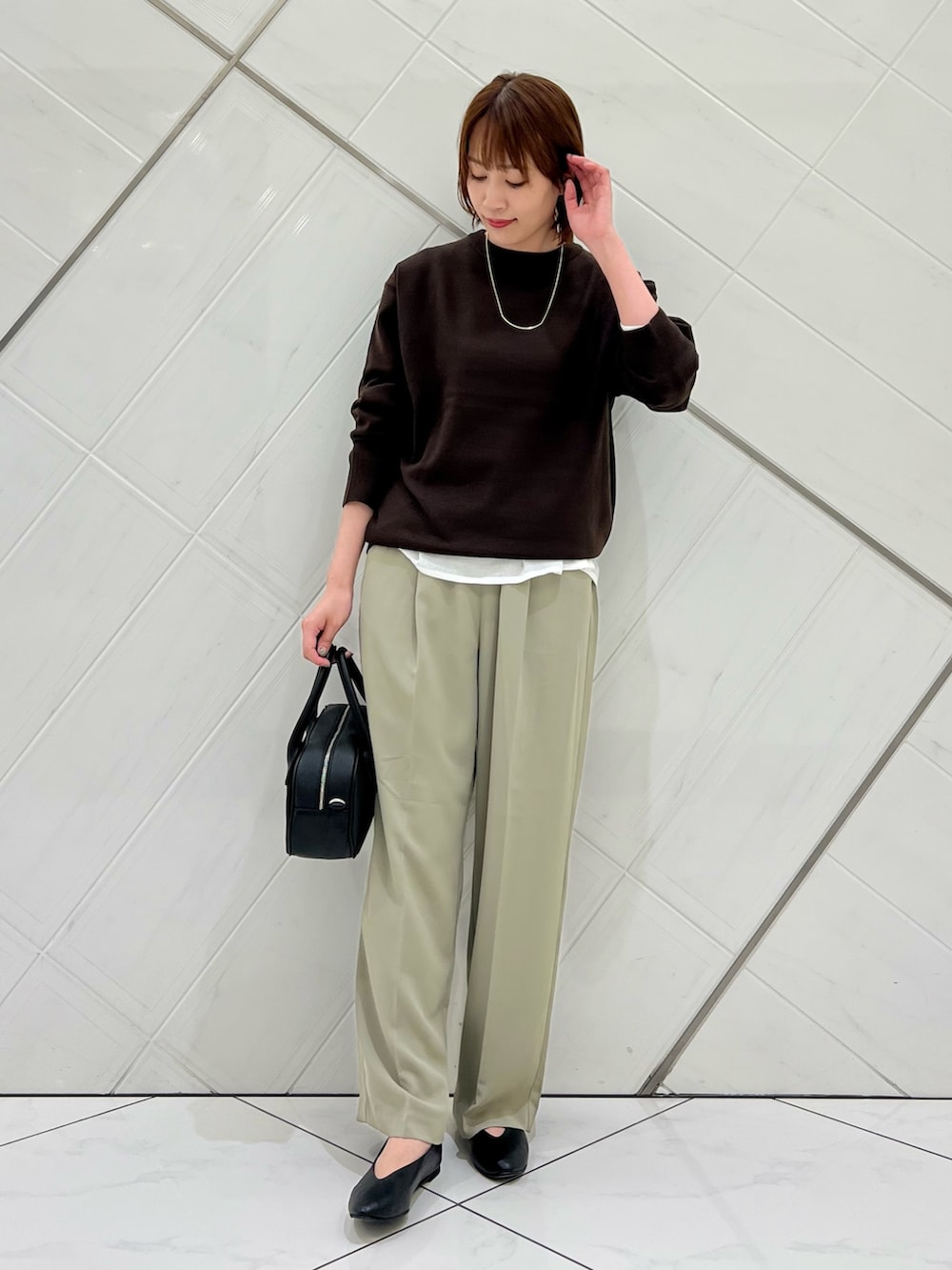 ブラウスの裾を見せるコーデもおすすめです✨