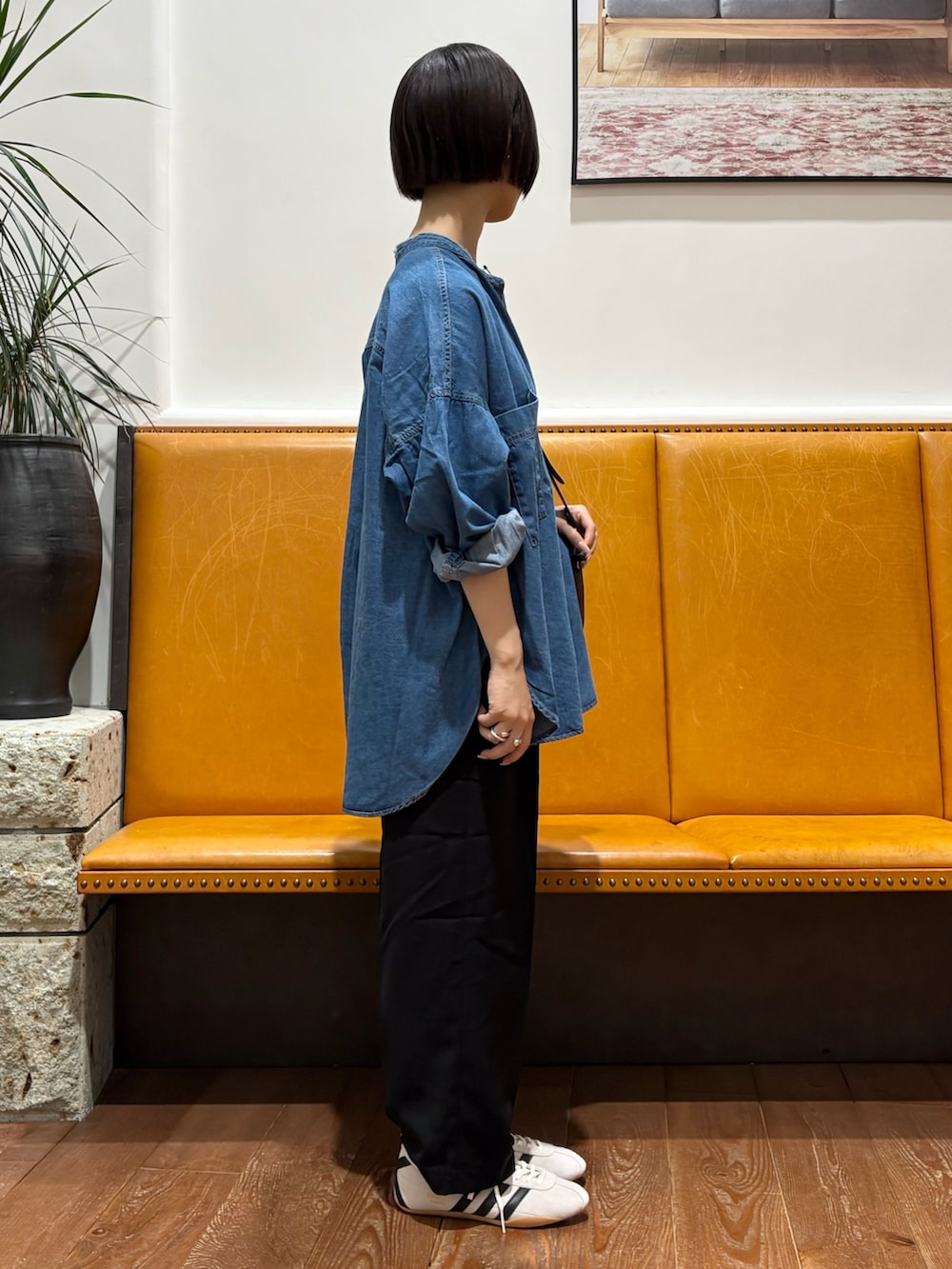 少し落ち感のある柔らかいデニム地のバンドカラーシャツです!