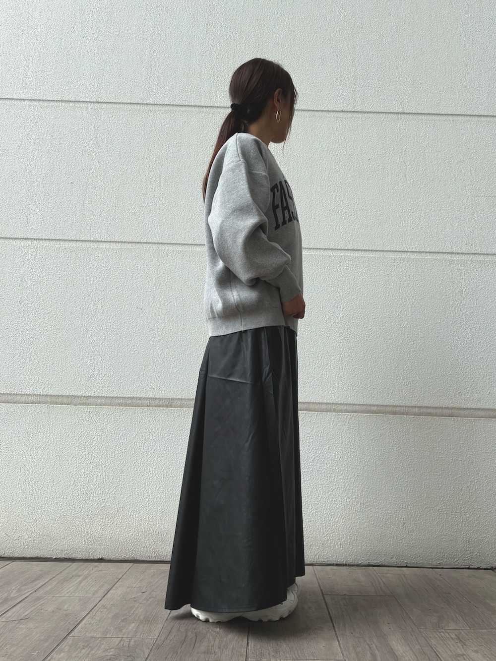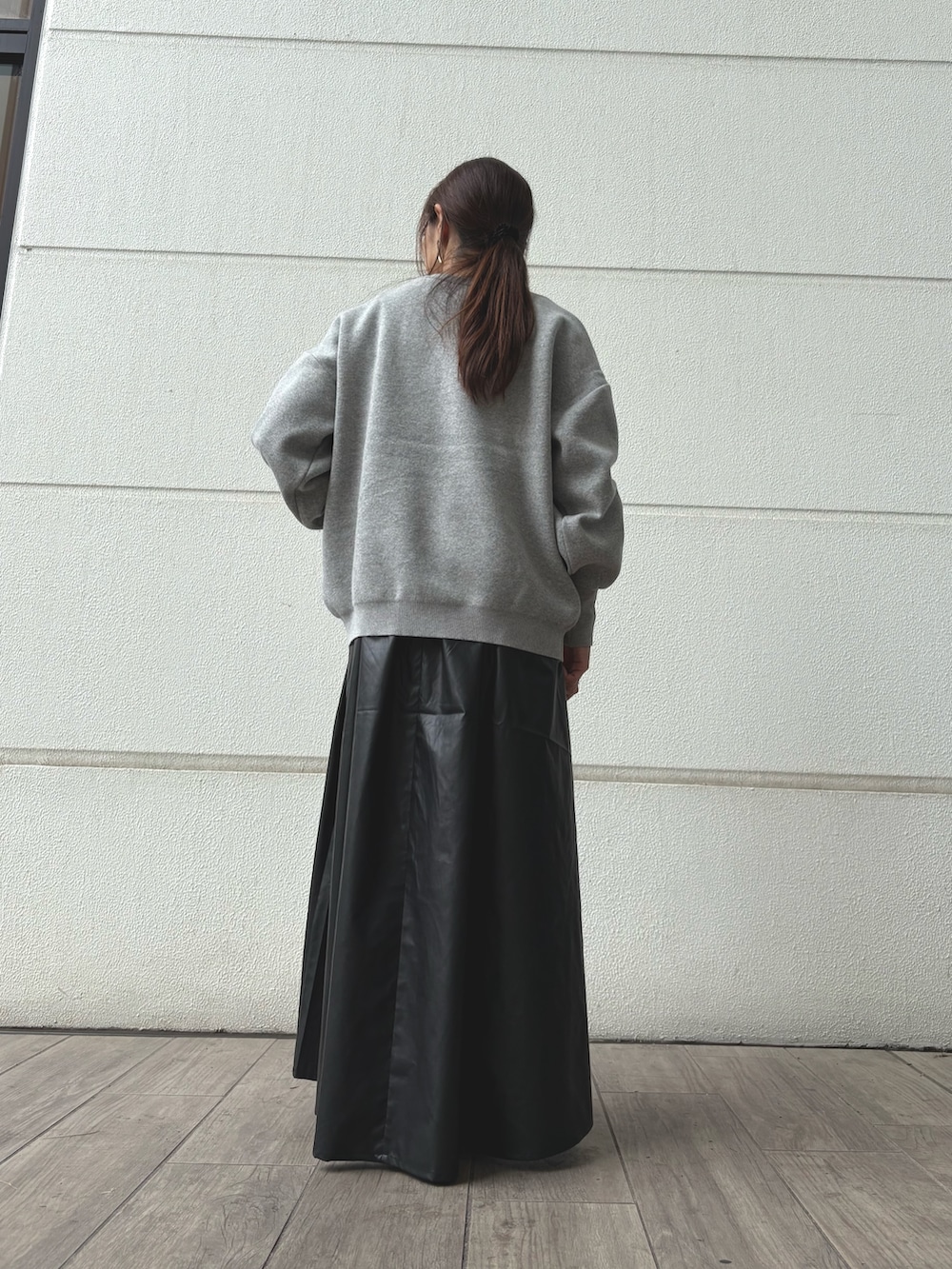 キャミワンピにトップスを重ねて、レザースカートのように着こなしてみました♪
