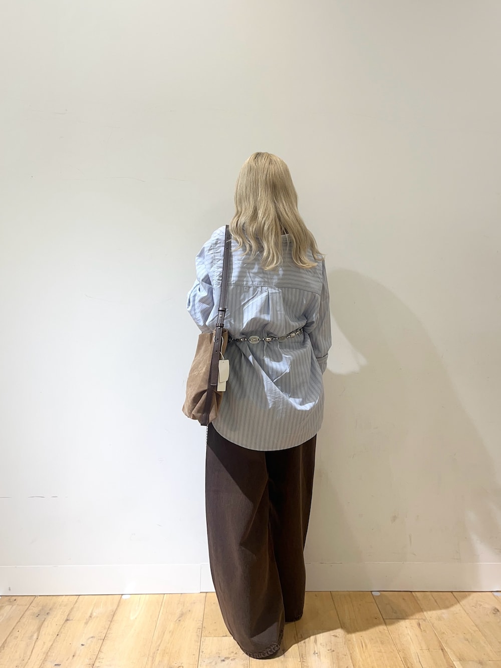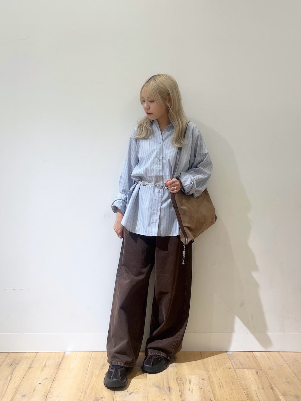 インナーのブルーストライプを差し色におしゃれな配色に💭