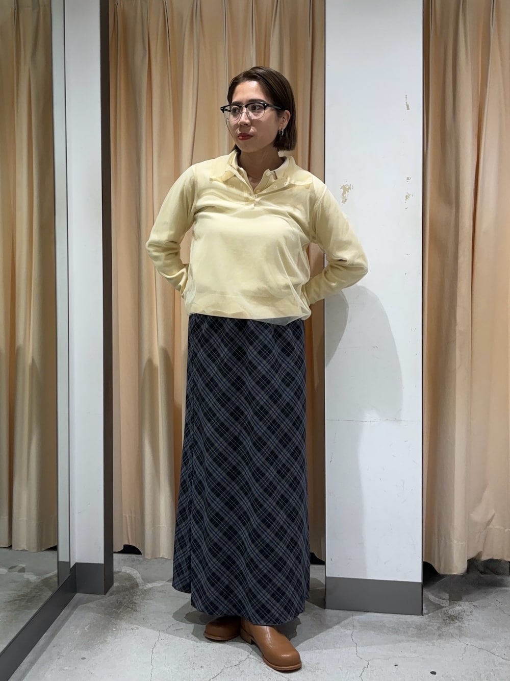 着てみた感じ、骨格ストレートさんはパリッとしたハリ感のあるシャツが得意なのですが、この落ち感のある素材が身体のラインを拾わずに華奢見えしてるように感じました!!サイドもシャーリングになっているので横から見ても可愛いスタイルに( ‘-^ )-☆