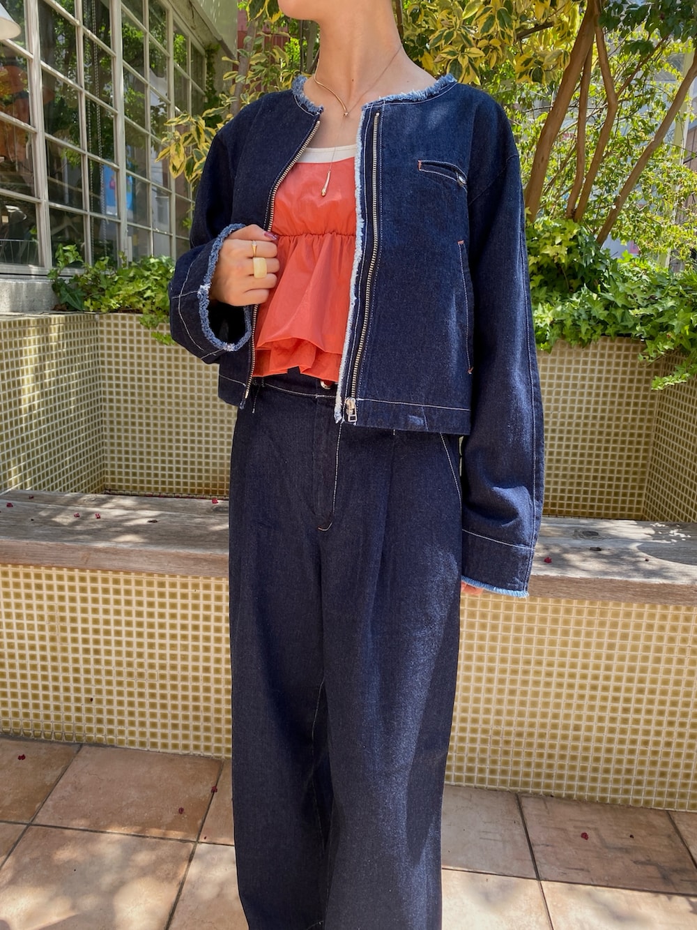 デニムのINDIGOにREDの組み合わせがオススメです🍊