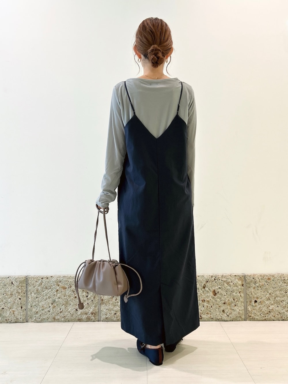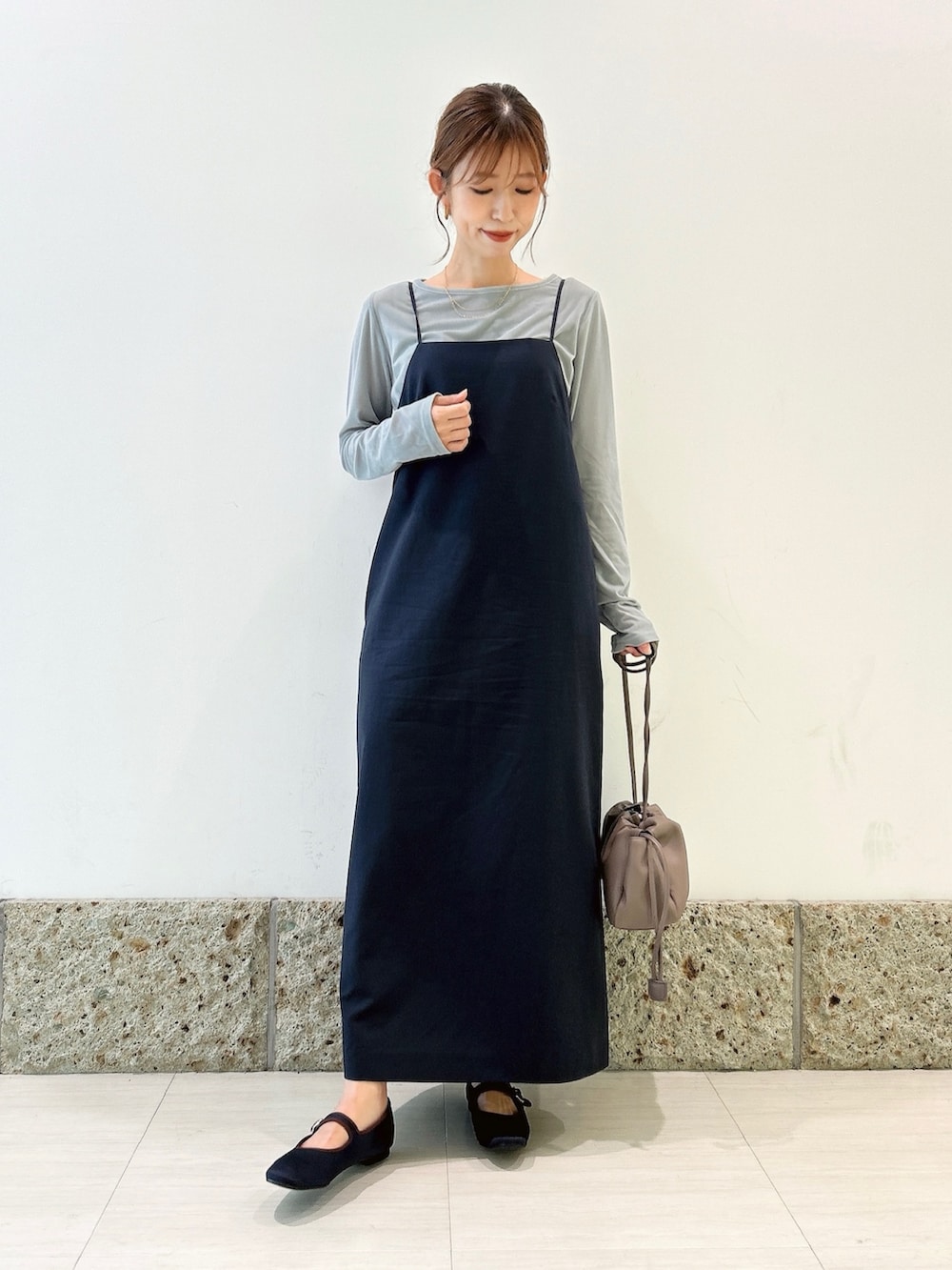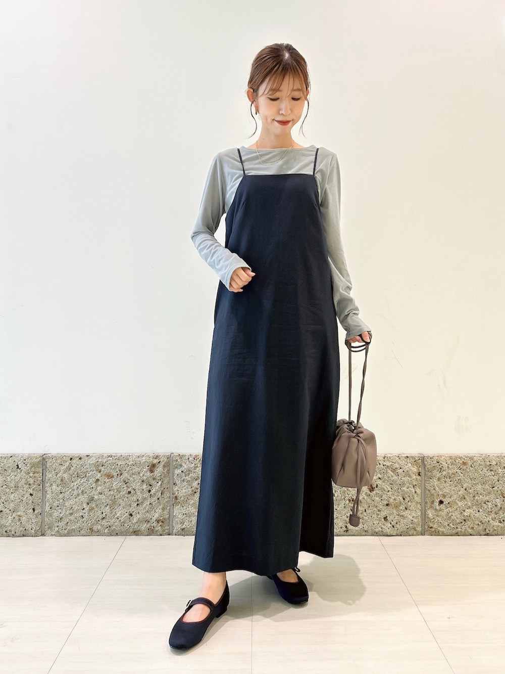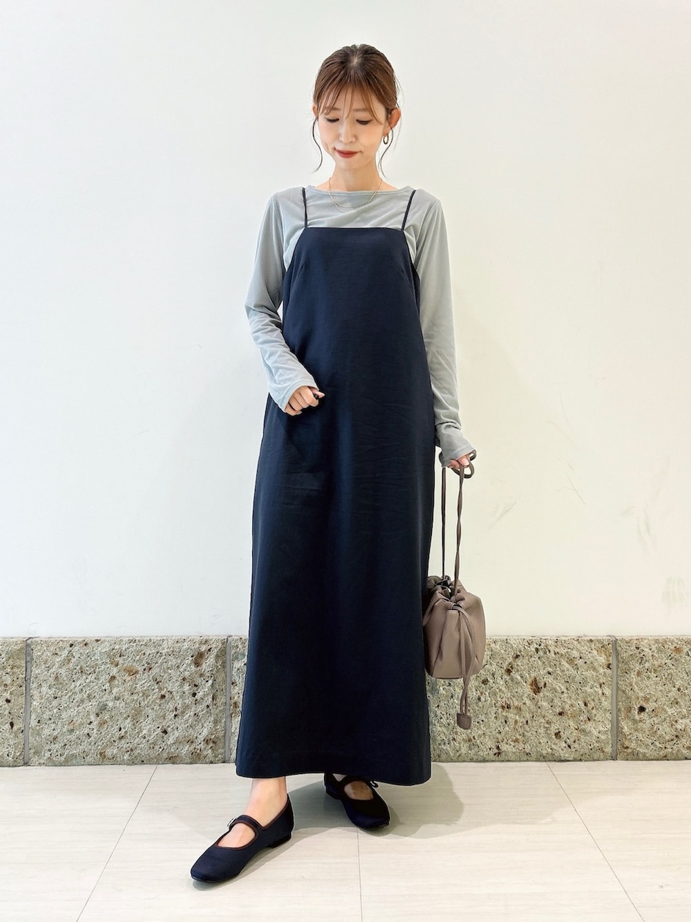 華奢な肩紐に落ち着いたネイビーカラーが大人可愛いです🫶🏻