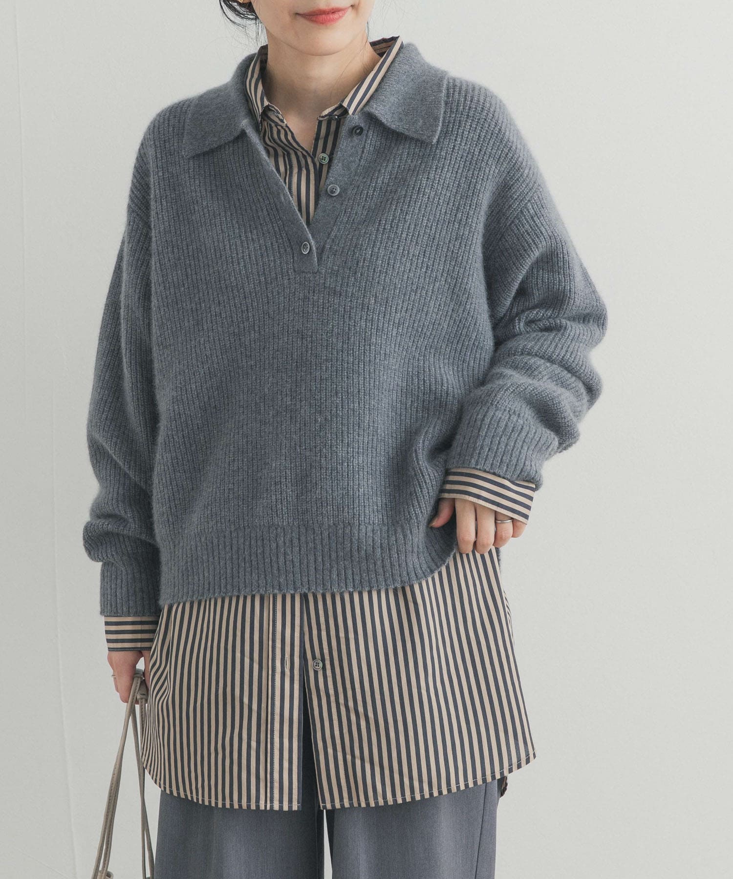 適度にゆったりとしたサイズ感なのでシャツやカットソーを仕込んでレイヤードスタイルも◎
