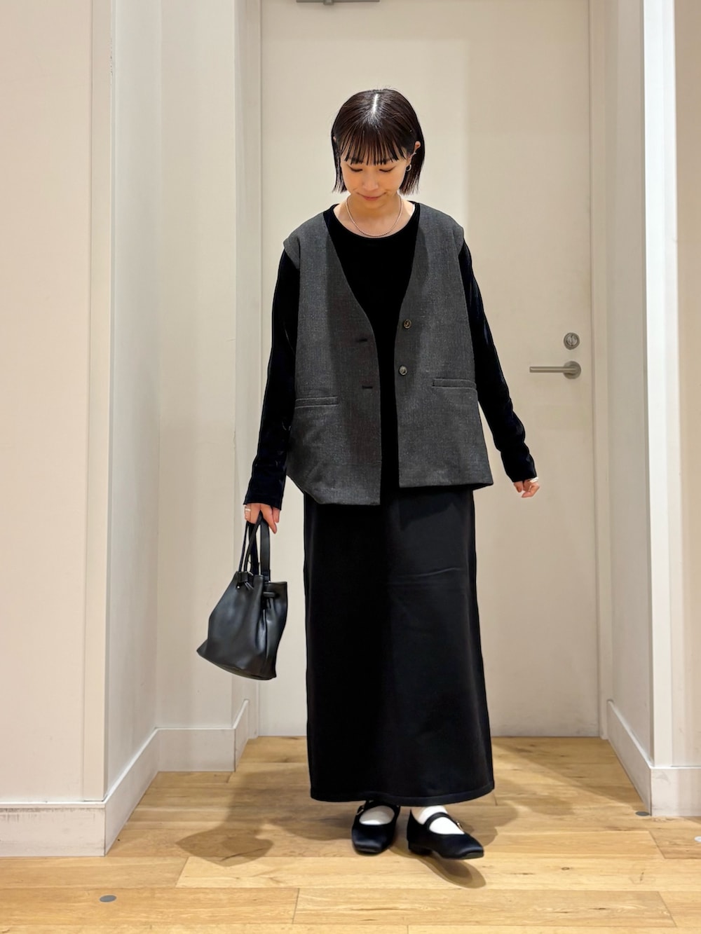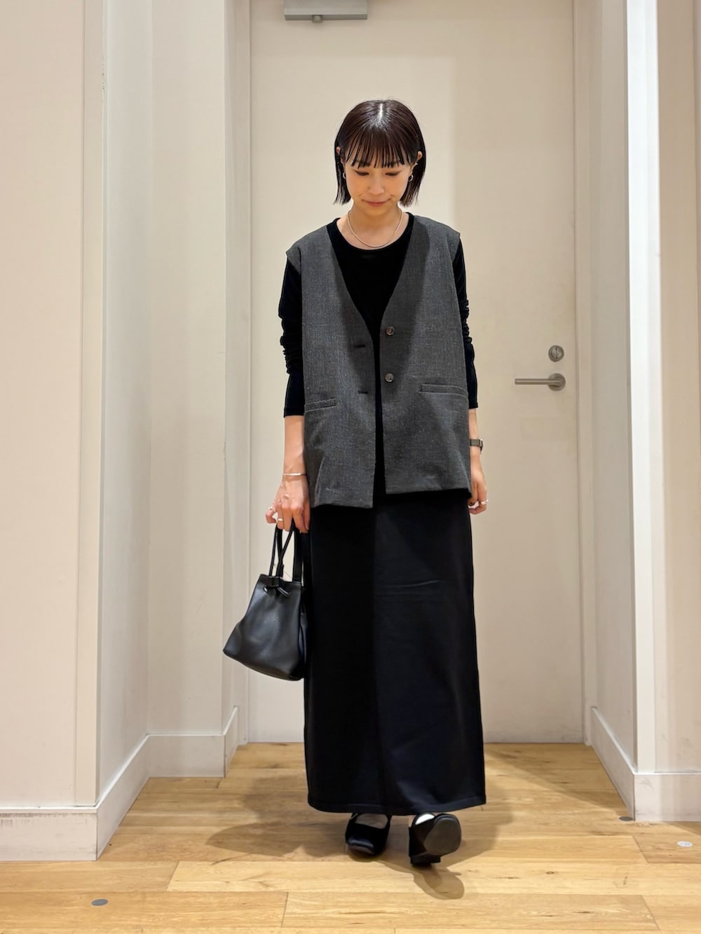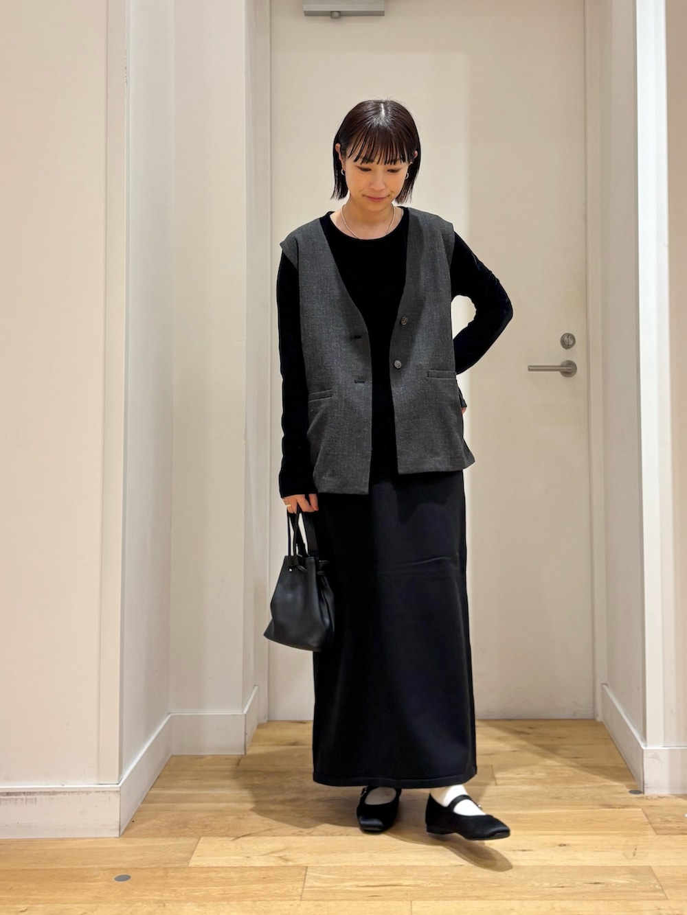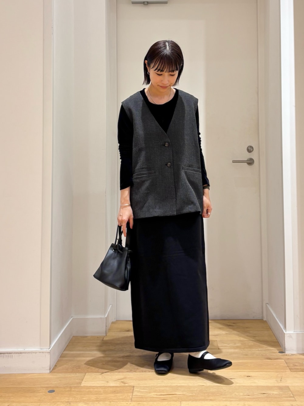 インナーとスカートにブラックを合わせて少し綺麗めにコーディネートしてみました。